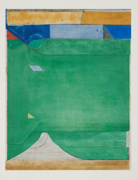 When Richard Diebenkorn visited the Soviet Union in 1964, it marked an inaugural gesture of cultural exchange for the two superpowers. For Diebenkorn, it was also a singular opportunity to view early works by Henri Matisse largely unseen in the West. Diebenkorn had never hidden his admiration for Matisse and he studied the older artist’s works at every opportunity. As the 2017 exhibition “Matisse/Diebenkorn” at SFMOMA demonstrated, works encountered during that 1964 trip left traces through the remainder of Diebenkorn’s career. This is easily spotted in the chromatic world of paintings—in the two artists’ manipulation of color as something limpid yet concrete enough to carry structural weight—but the echoes also reverberate through the architecture of the prints.