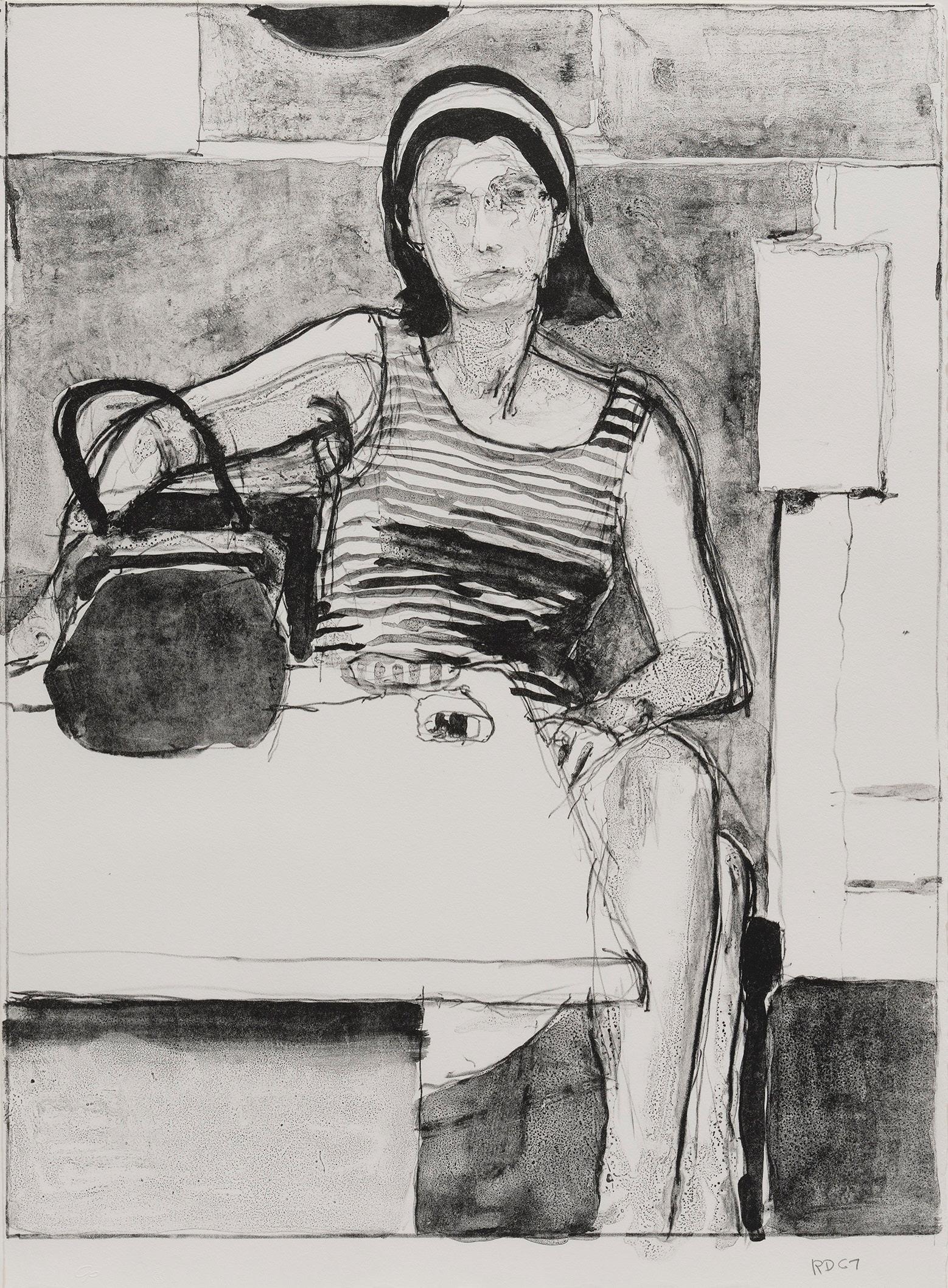Printmaking was an integral part of Diebenkorn’s career, and he produced a significant body of more than 150 master graphics. He was drawn to the deliberate yet often unpredictable nature of the medium, using it as a means to further explore the formal concerns of his drawings and paintings. He experimented with lithography, woodcut, and monotype in the 1950s at the California School of Fine Arts and the University of New Mexico. However, his printmaking practice did not truly flourish until he began working with Kathan Brown at Northern California’s Crown Point Press in 1962.