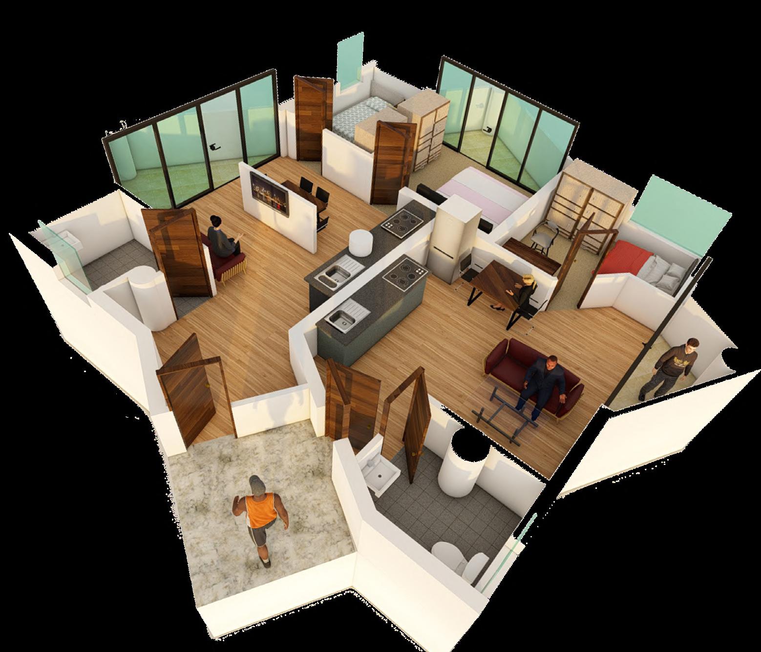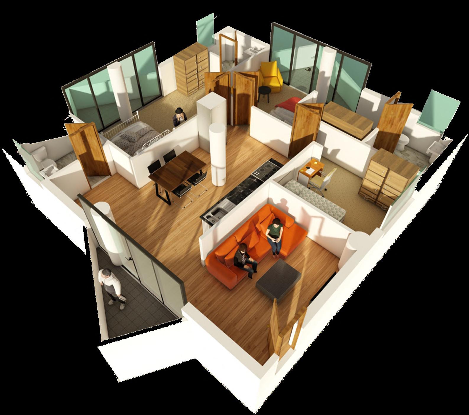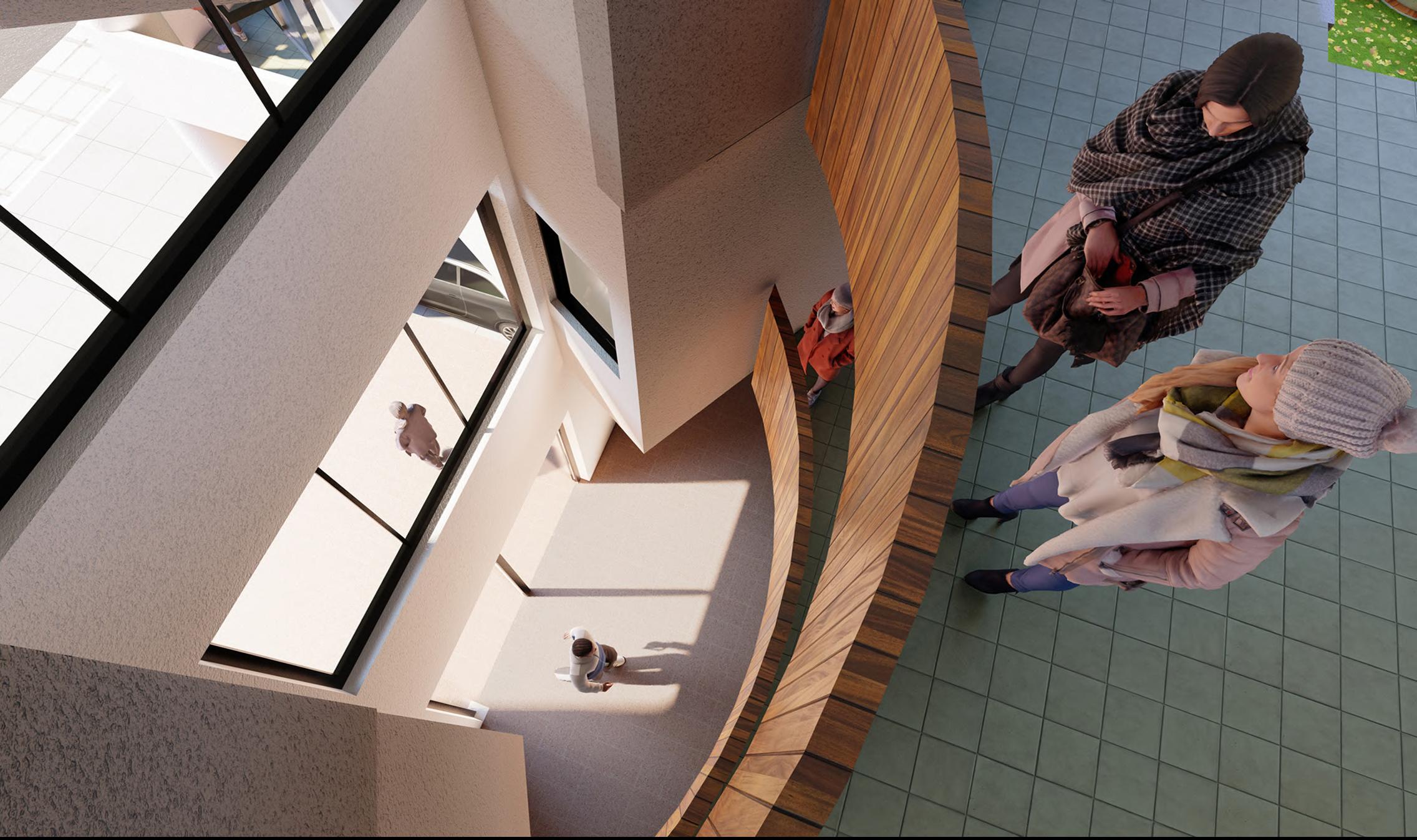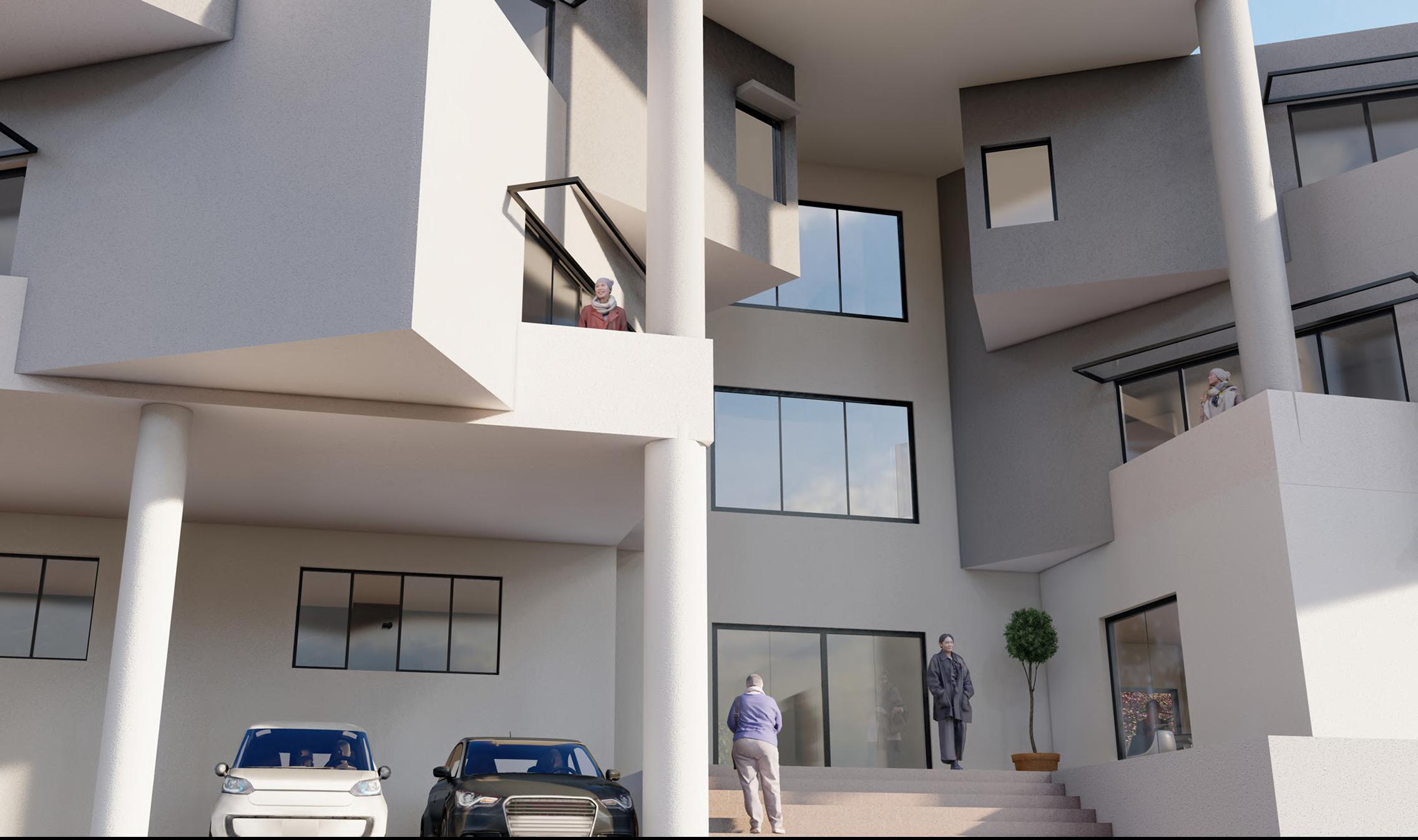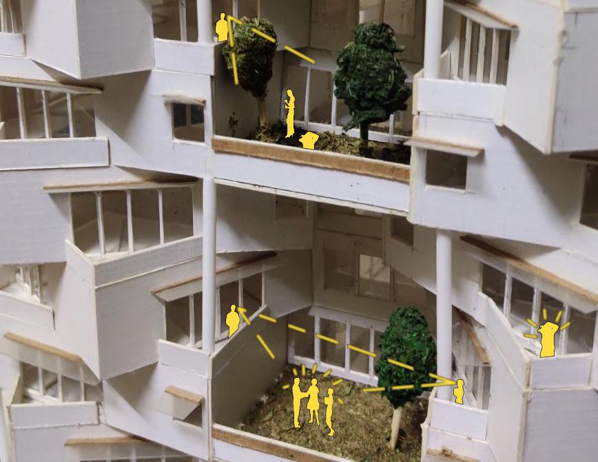 Lack of interaction among the residents of the appartment was one of my biggest concerns during the design process . I took inspiration from the kathmandu city where people interact with each other from their terraces and tried to immitate the activity in my design