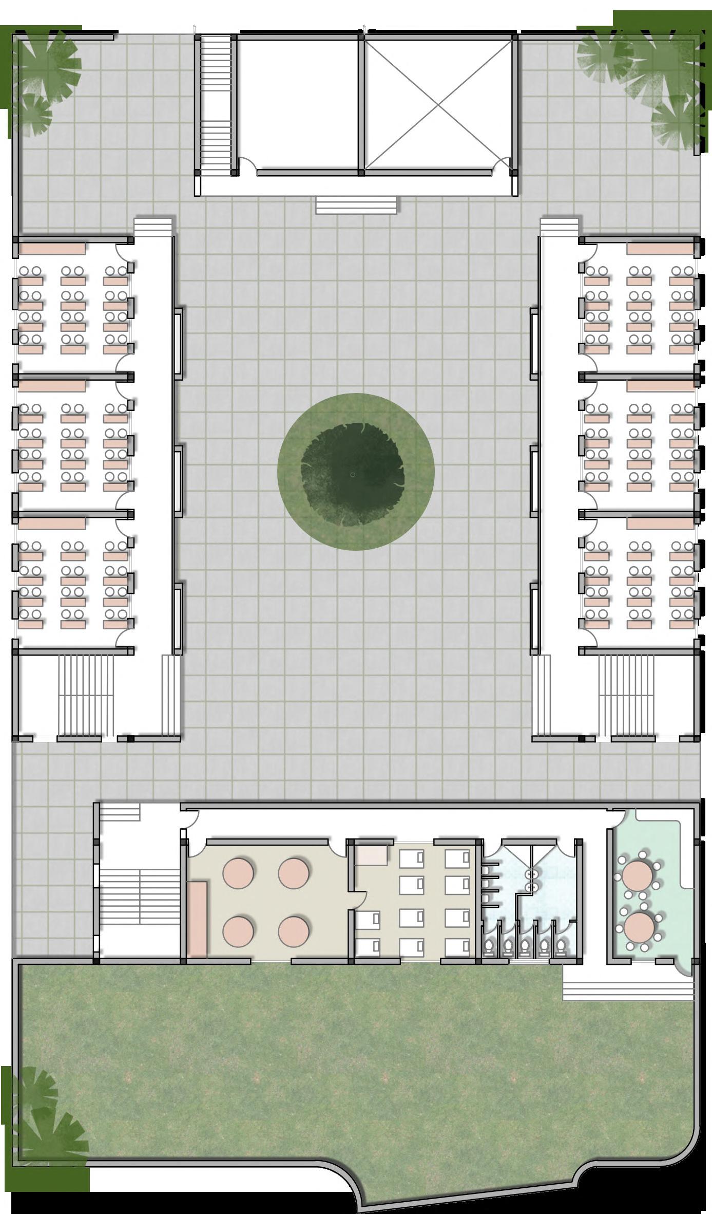 Courtyard serves as a multifunctional space for various activities like morning assembly, outdoor classes, hangout spots,play area etc.
