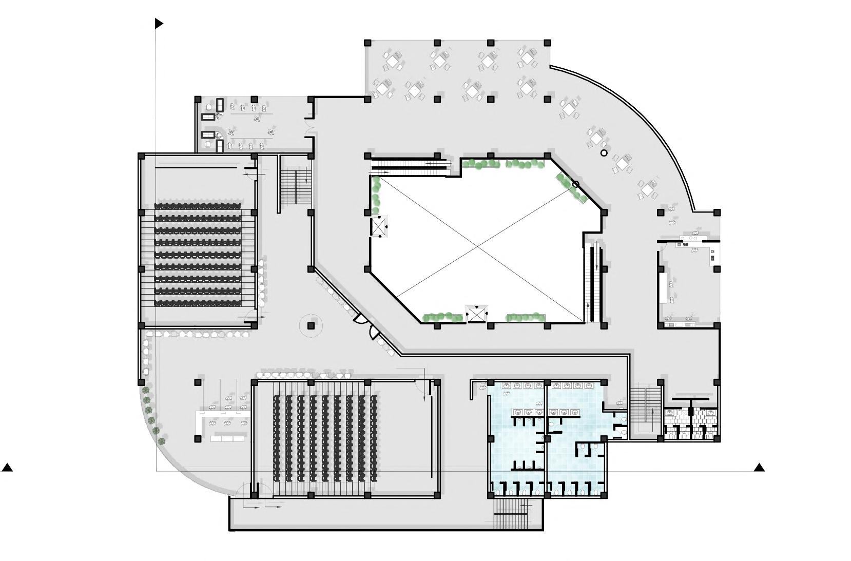 Central atrium serves as a multifuntional space for cafe, concerts and many more .