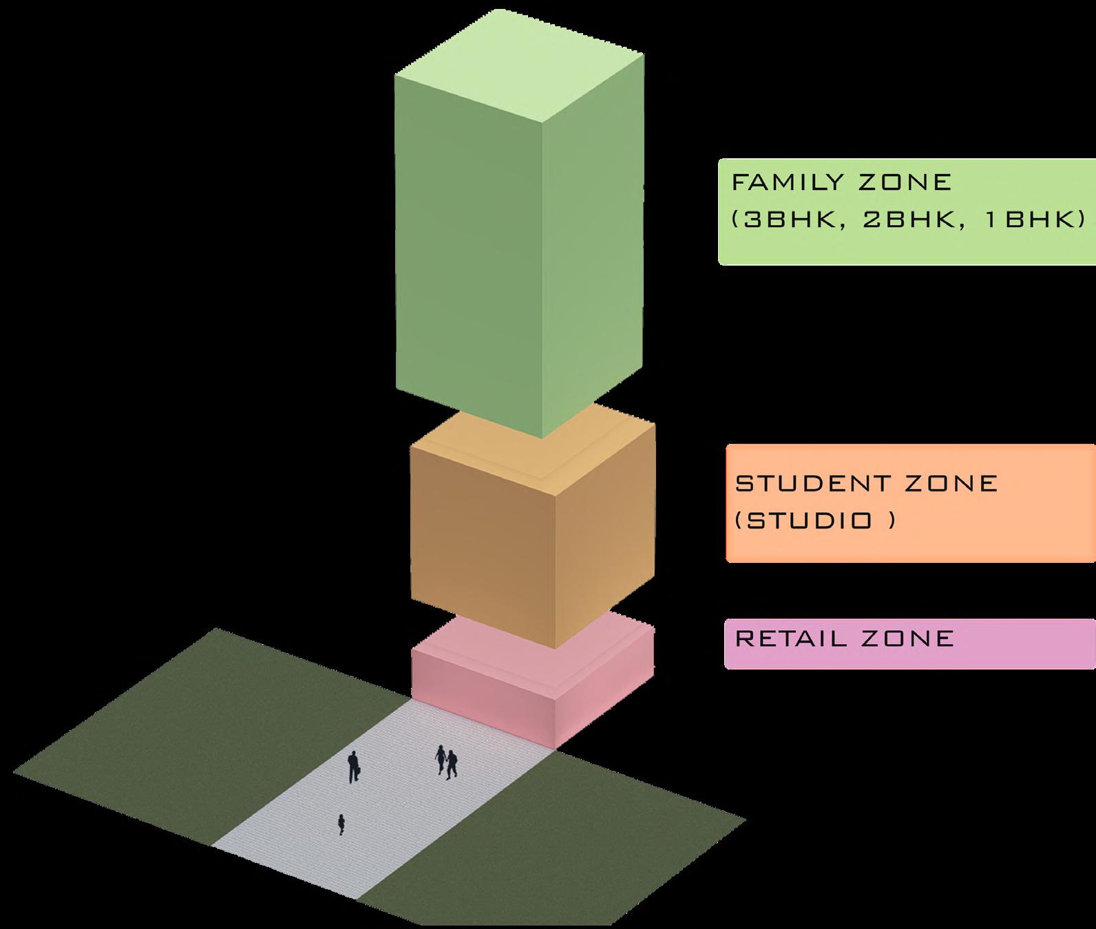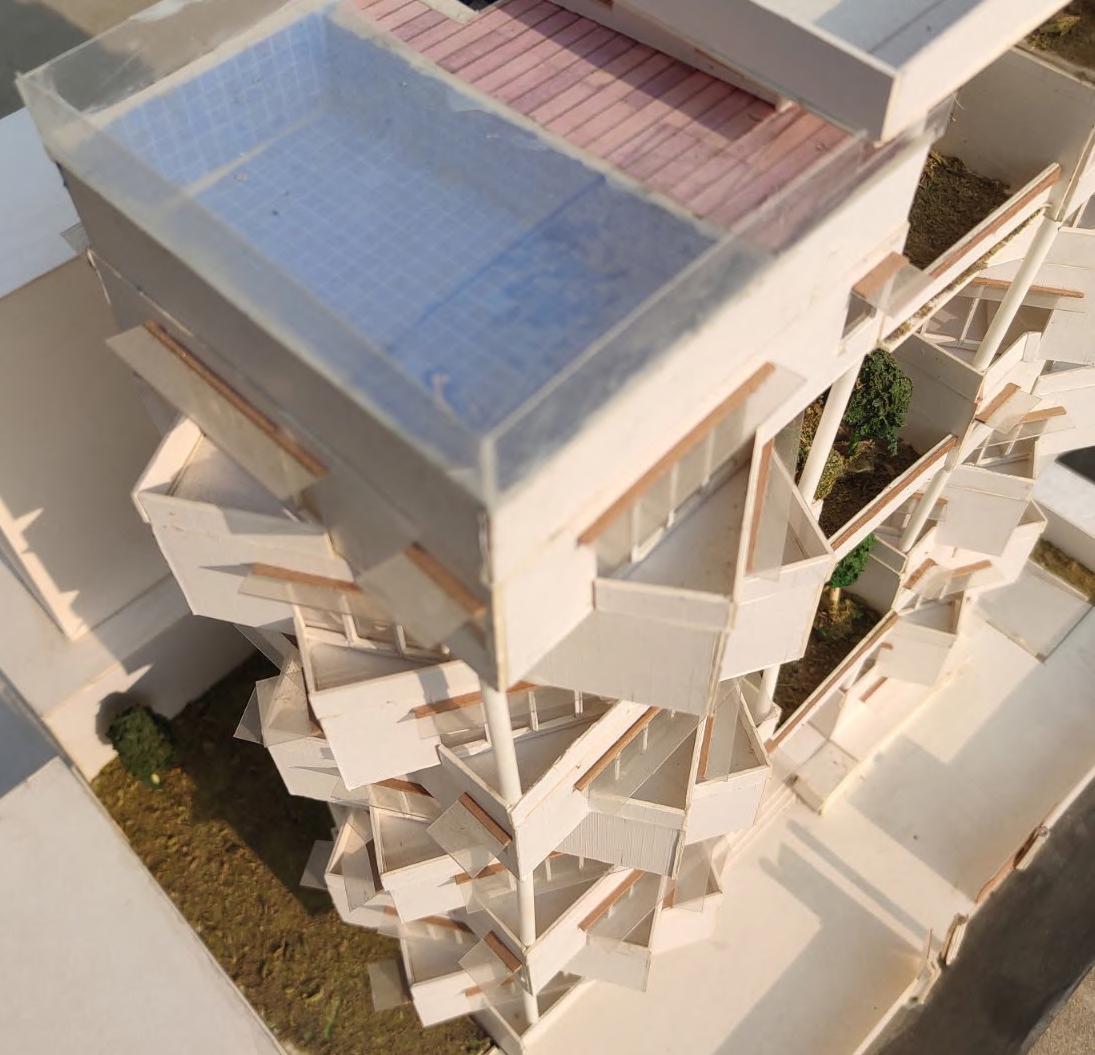 I also gave some thought on the marketing context of apartment by creating a structure that looks completely diffrent from the surrounding buildings intending to catch eyes of people passing by for the marketting purposes..