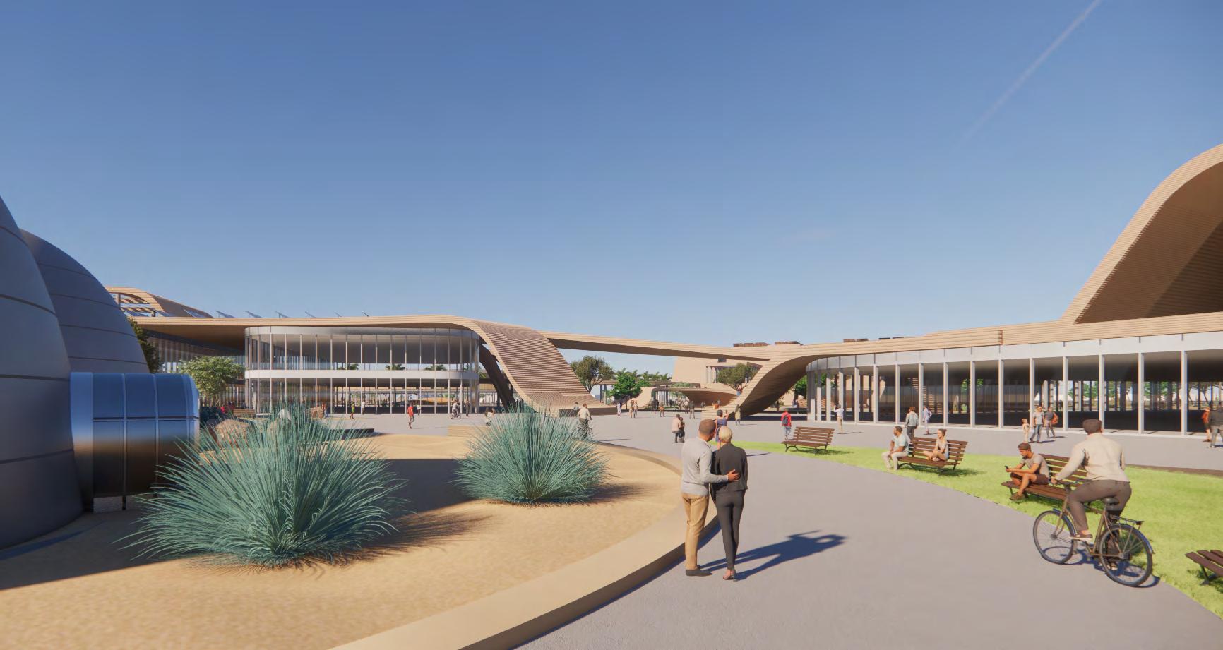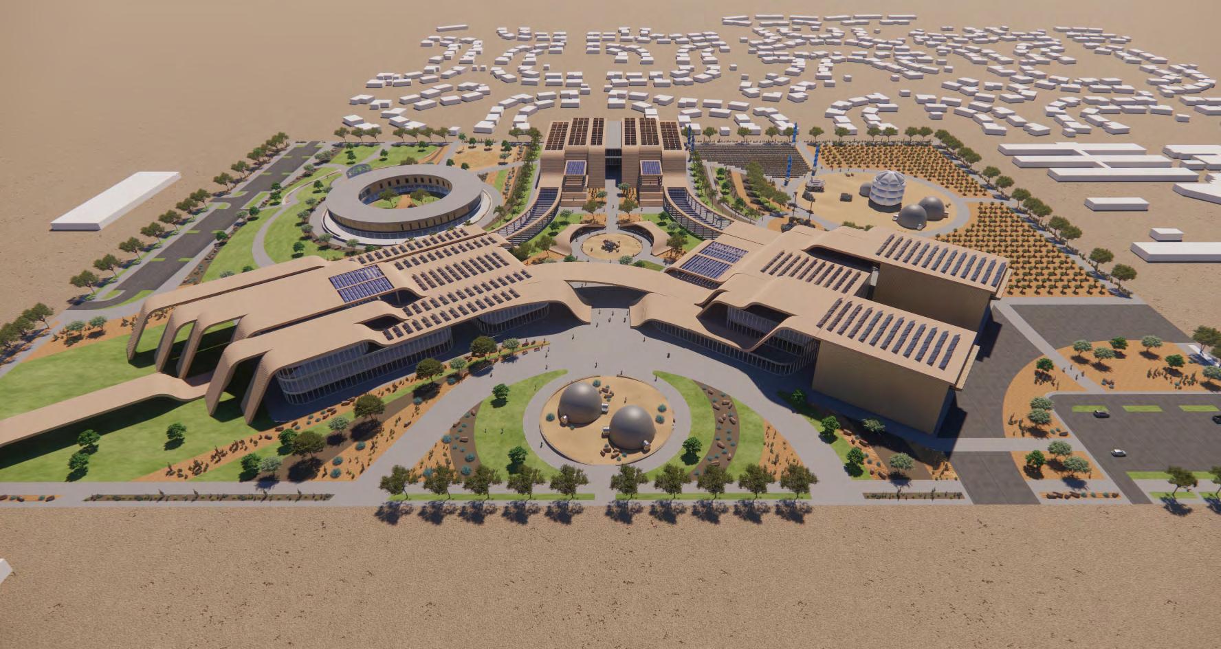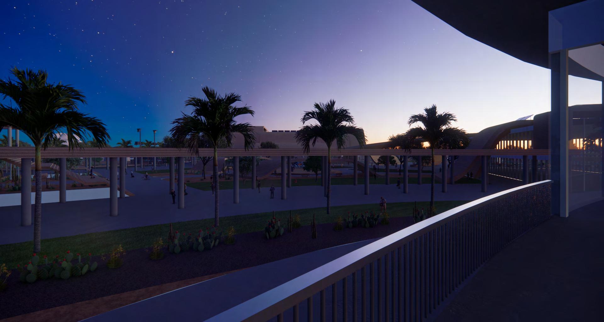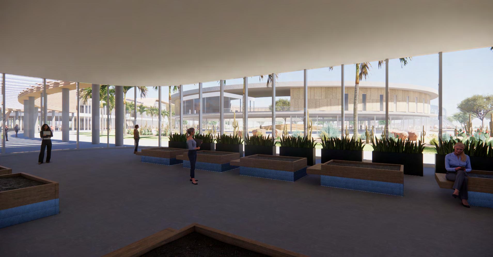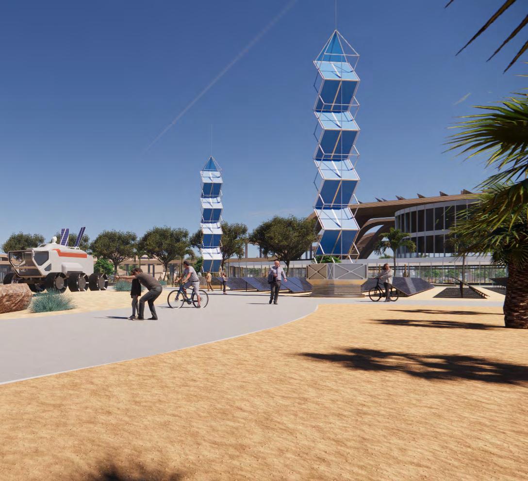 The ASU Polytechnic campus, with its cohesive assortment of buildings, proximity to solar-power facilities and an airport, and distribution of STEM and aerospacial majors provides an ideal location for a central hub of space architecture and science. Our proposition for this project draws inspiration from the land itself, traditional desert architecture and vegetation, and the arrangement of the planets in our solar system. The area will include labs and classrooms for ASU students, as well as hangars and exploration yards for visiting and resident scientists, a greenhouse for food science and production, and a museum for the public. Additionally, it will feature the latest advances in construction technology, particularly in its overall climate resilience and 3D printed elements.