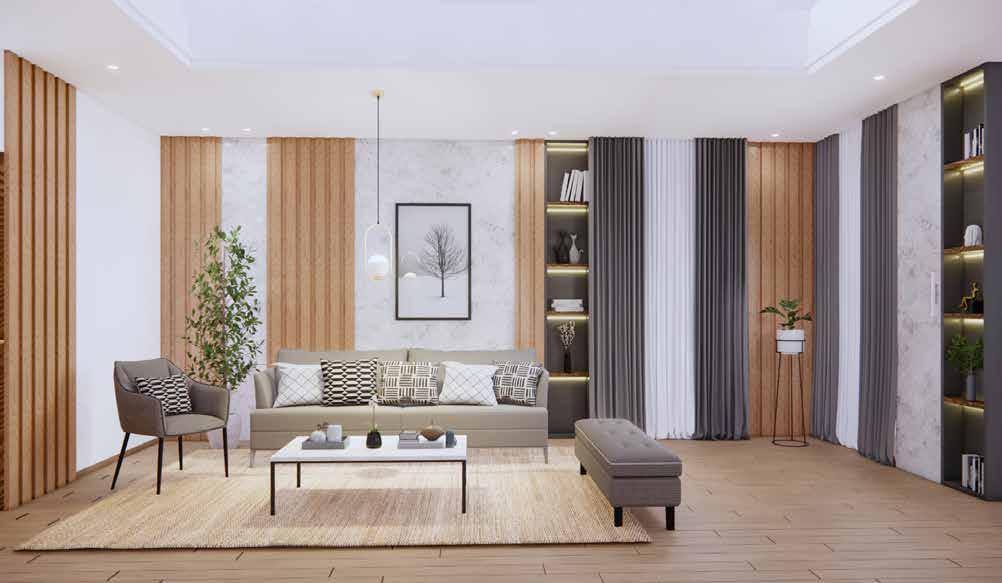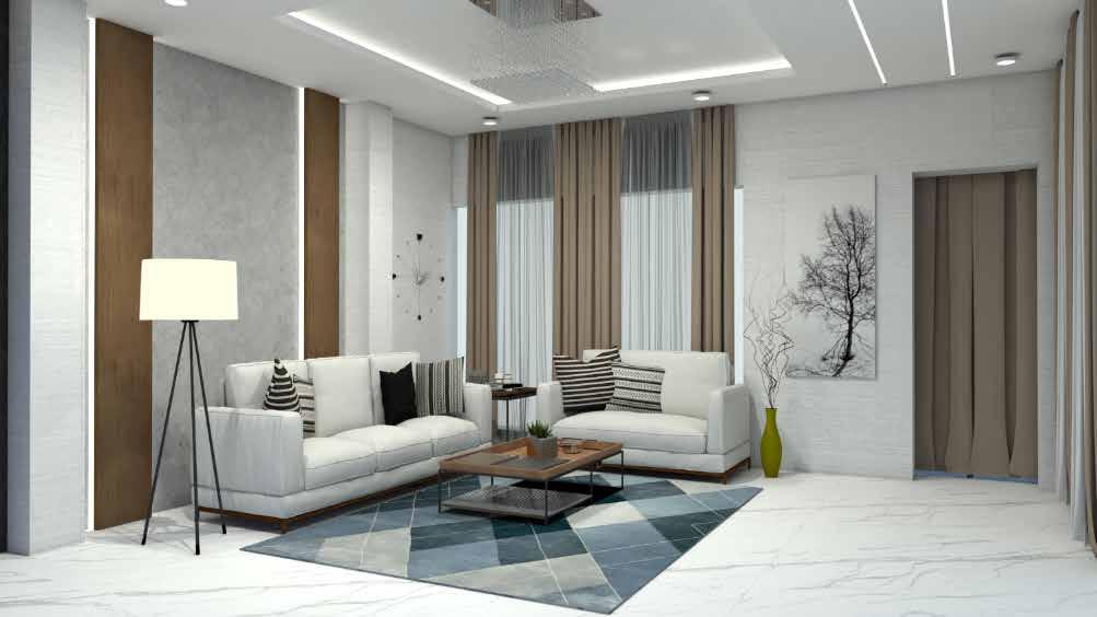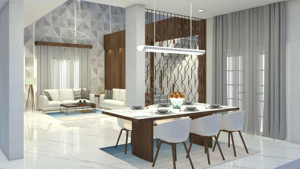 The use of light and warm tones in the living and dining areas make the room more cozy and inviting. The use of a combination of ambient, accent and task lighting creates uniform illumination and enhance and strengthen the characteristics of the space by highlighting areas of interest and architectural details.