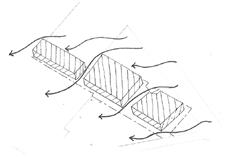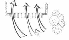 The wing walls along the west side are used to permit the light.Reducing the bounce back radiation it also serve as barrier to avoid harsh hot winds. When air hits the bottom portion of window it dashes towardds the inner room maintainig the space cooler always.