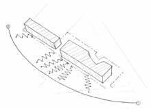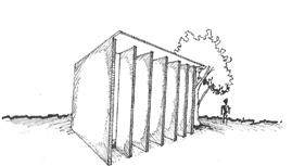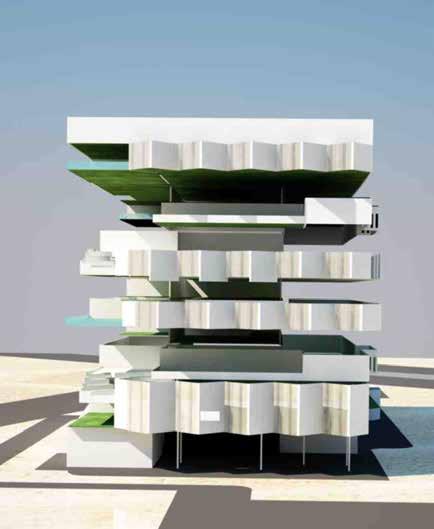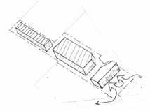 The design has to be an stand alone self sustaining structure creating views at the front and parallel sides of the site and by blocking the view through the site at the rear ends.