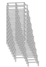 The model is drawn in AutoCAD and then imported to MIDAS from dxf format. Since the whole structure model of the mountain is made by the same repetitive system of blocks, with same measures for height and width and only decreasing in number of blocks from the back to the front and to the sides, by suggestion we made a central section of the volume, leaving the representative shape and main heights.