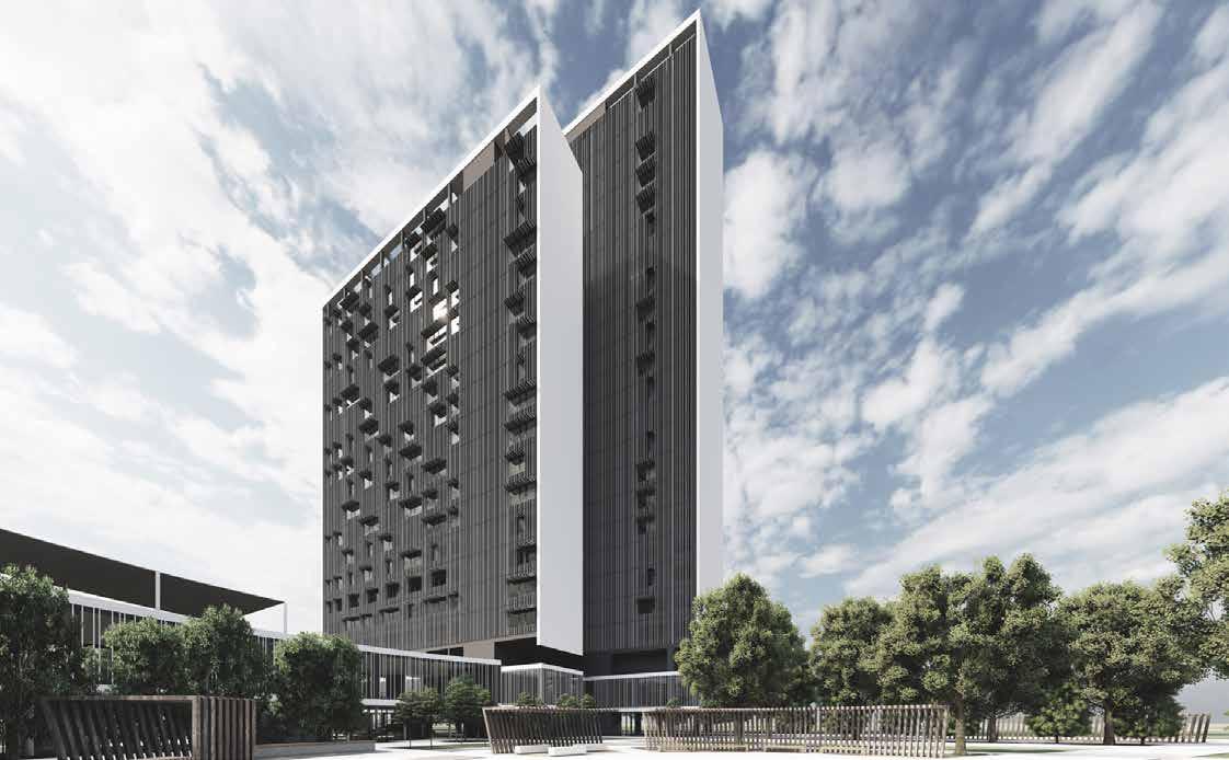 The student rooms are located from the 4th floor till the 24th floor which provides more privacy for the students. Each floor is provided with study boxes where students can collaborate with eachother.