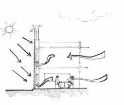 The air within the space is driven out by cold winds through vents which has to fling off so they are brought up by the stack effect.