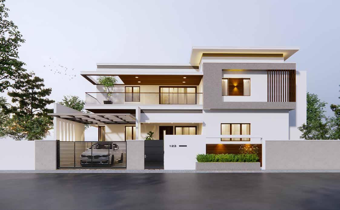 The proposed villa is of over 5500 Sqft builtup area, with privacy as the main point of interest. The aim is to balance a desire for privacy against the desire to enjoy one’s surrounding,.Nature and light, as well as surrounding views, are allowed into the home while also managing the amount of space exposed to the public gaze.The design consists of a number of informal spaces and in order to incorporate privacy into the design, private outdoor spaces in the form of interior courtyard is proposed. It’s planned as a central cut out space with the core areas that continue for two floors, making the entire transition space more inviting and grand.