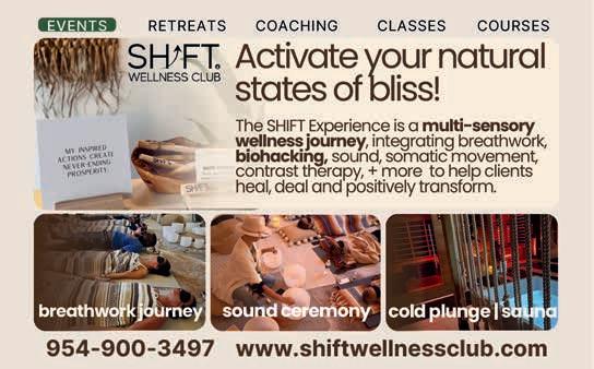 SHIFT: Where vitality is wellness! Upgrade your mind, body & vibe with Breathwork, Biohacking, Sauna, Cold Plunge, Events, Classes & Retreats. Start your SHIFT today! See ad page 9.