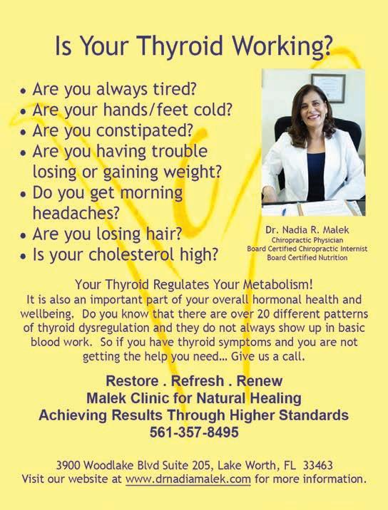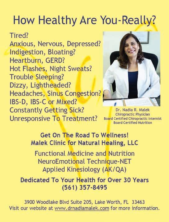 Natural Awakenings is a free publication distributed locally and is supported by our advertisers. Please call 561-626-5584 to find a location near you or if you would like copies placed at your business. We do not necessarily endorse the views expressed in the articles and advertisements, nor are we responsible for the products and services advertised. Check with a healthcare professional regarding the appropriate use of any treatment.