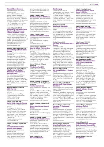 West Dean Gardens, West Dean, Chichester PO18 ORX Enjoy live Latin music, cookery demos, hidden cinema and more at the UK’s largest chilli festival with family-friendly camping on-site. From £14.40 Adults, from £2 Children. Contact: www.chillifiesta.co.uk 01273 811301 gardens@westdean.org.uk