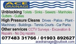 Every address every month 3 emma@theorthoticworks.co.uk www.theorthoticworks.co.uk THE ORTHOTIC WORKS Custom made to measure Orthotics relieving foot & back pain since 1976 Mobile service available 01903 357073 ORTHOTICS PLASTERING PRIVATE HIRE / TAXI PEST CONTROL PLUMBING / HEATING • Bathroom installation • All plumbing work • Oil boiler servicing & installation • Fully insured FOORD PLUMBING SERVICES Ben Foord: benfoord@gmail.com 07889 905257 PEST CONTROL PLUMBING / HEATING ROOFING PET / ANIMAL SERVICES PLUMBING / HEATING Robbie Scott Plumbing & Heating • Full bathroom installations • All aspects of plumbing including radiator & water tank renewals • Tiling & all floor coverings 07540 292027 robby2scotty@aol.com PRIVATE HIRE / TAXI ROOFING PLASTERING PRIVATE HIRE / TAXI ROOFING Business Directory 53
