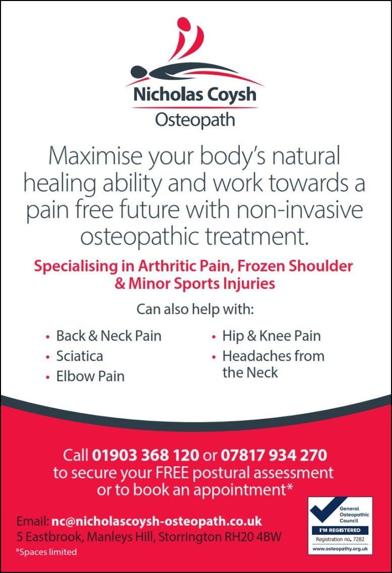 HORSHAM CLINIC Don't let pain keep you from life... • Osteopathy • Sports Massage • Shockwave & Laser Therapy • Rehabilitation • Injury Diagnosis & Management Feel better, move better, be better! 01403 598017 19 Graylands Estate, Langhurst Wood Road, Horsham, RH12 4QD (FREE PARKING) WWW.SUSSEXSPORTSINJURY.CO.UK 26 Health & Wellbeing