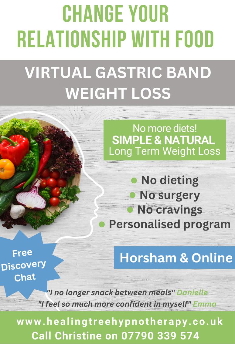 can arise from a variety of causes and as everybody is different, she uses a wide range of tools to offer what is most appropriate for each individual. As well as hypnotherapy, Christine uses other therapeutic tools such as Emotional Freedom Technique (EFT) and Eye Movement Desensitisation Reprocessing Therapy (EMDR) which is recognised by the World Health Organisation as being a first-choice treatment for dealing with Post traumatic Stress Disorder (PTSD). Her approach, above all, is to work closely with the client to find the treatment which will be most beneficial in regaining a balanced outlook on life. 10% discount on Virtual Gastric Band Weight Loss Hypnosis programme and on a 3 session phobia package until 30/6/23 (Quote SLJuneOffer)