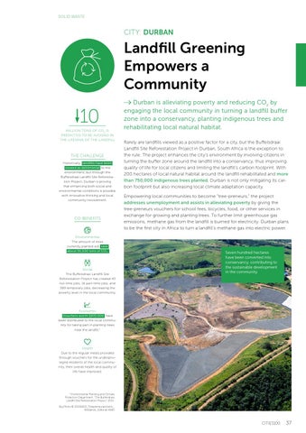 THE CHALLENGE Historically, landfills have been viewed as detrimental to the environment, but through the Buffelsdraai Landfill Site Reforestation Project, Durban is proving that enhancing both social and environmental conditions is possible with innovative thinking and local community involvement.
