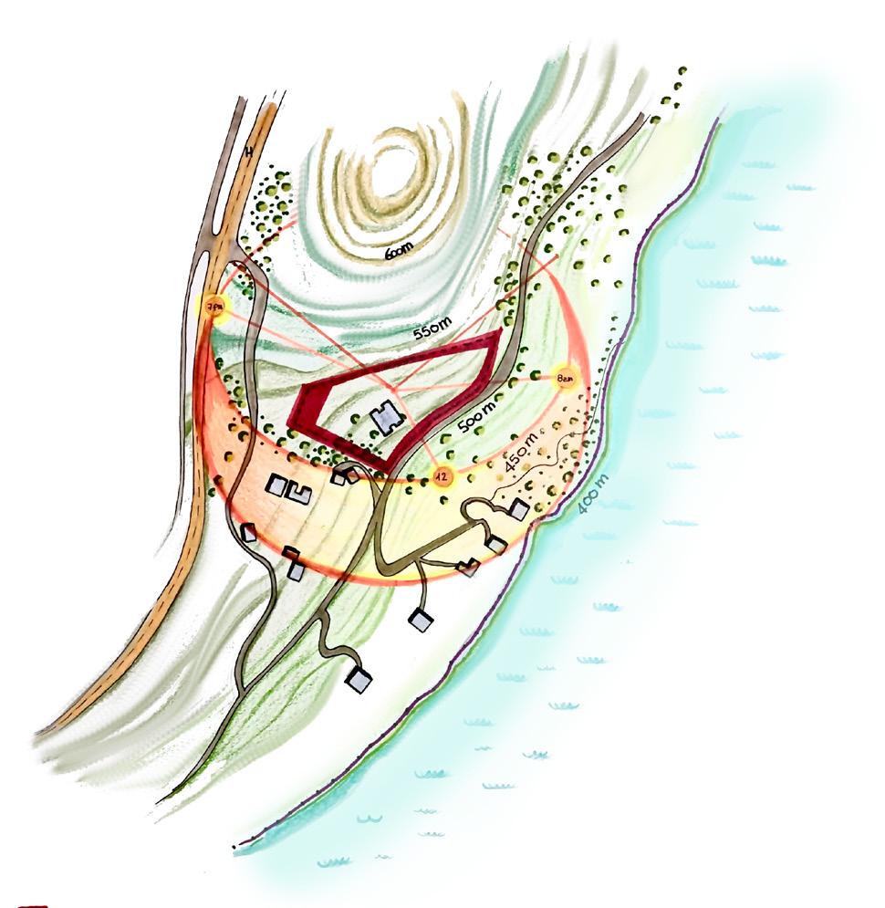 lot perimeter proposed building highway 97A secondary road unpaved road okanagan rail trail residential buildings residential buildings noise treed area grass and shrubs sun analysis - june