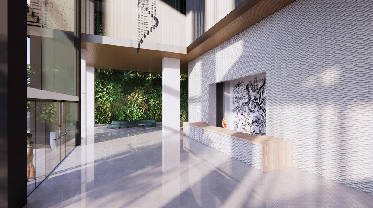 The west elevation features a ground-to-roof vertical garden, complimented with rays of natural light provided by a generous skylight.