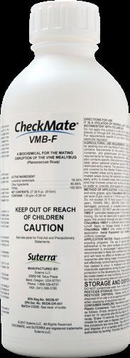 CheckMate® VMB-F is Suterra’s pioneering sprayable pheromone release formulation for vine mealybug (VMB) mating disruption in grapevines.