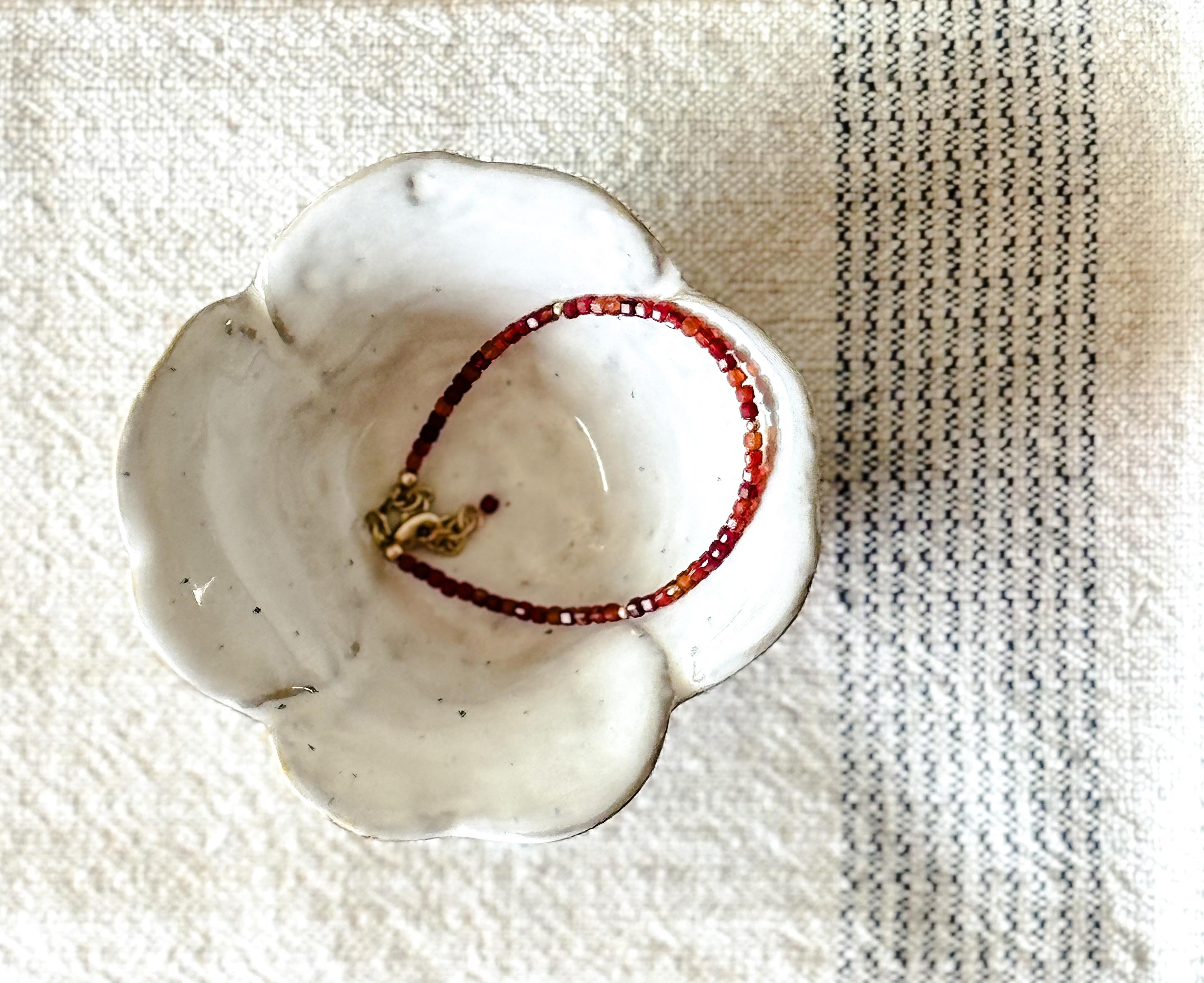 Beautifully delicate flower shaped pinch bowl to use in your bathroom, kitchen or nightstand. Dishwasher safe.
