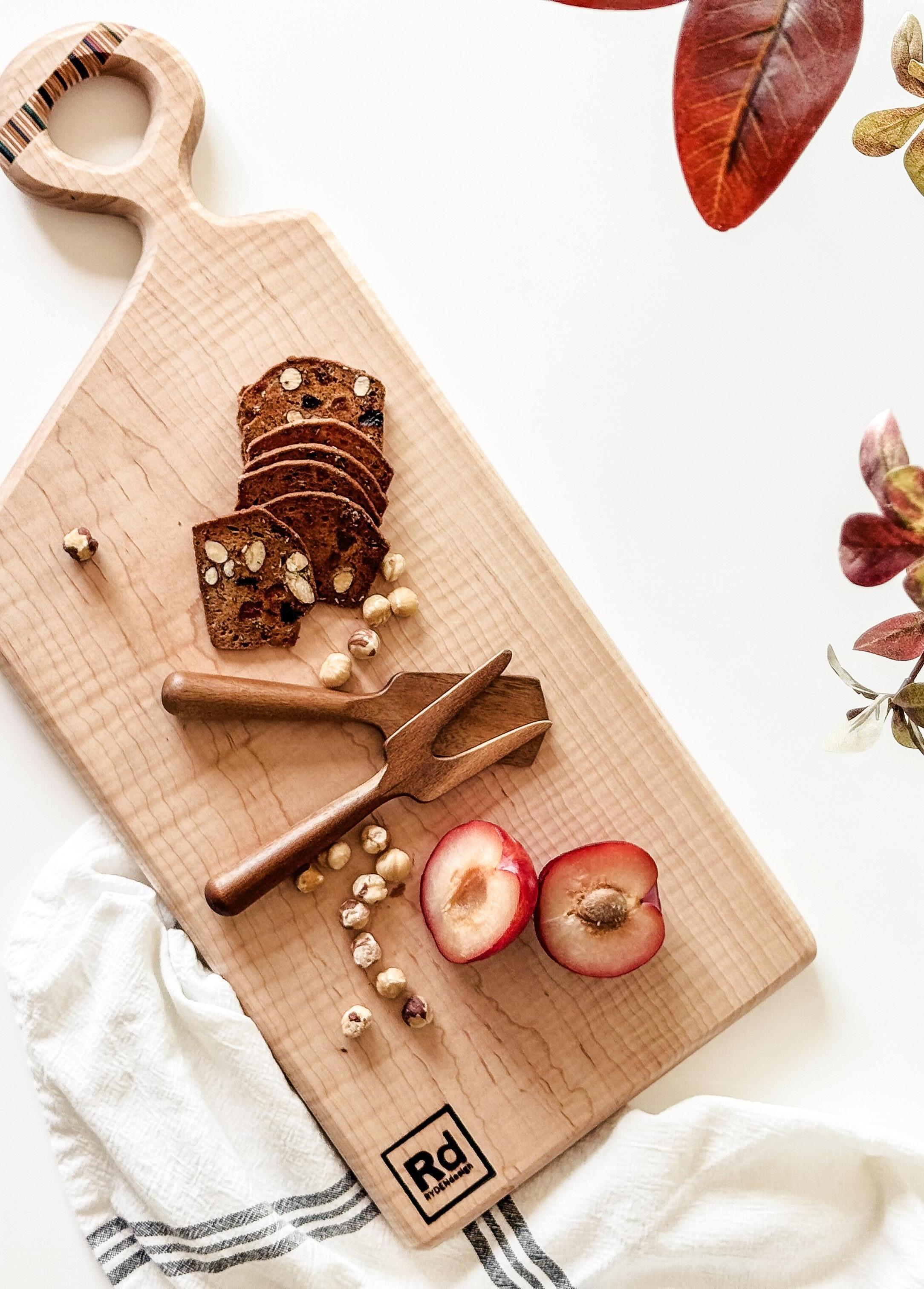 I met Ramsey two years ago when I invited myself over to his woodshop. From there, our friendship grew over an appreciation of well-made, handcrafted goods, including his custom wood boards. What I particularly love is his thoughtfulness and creativity—and that he can take any of my crazy ideas and make them into a reality. Look closely at any colorful details, and you’ll discover that he incorporates old skateboards into his designs!