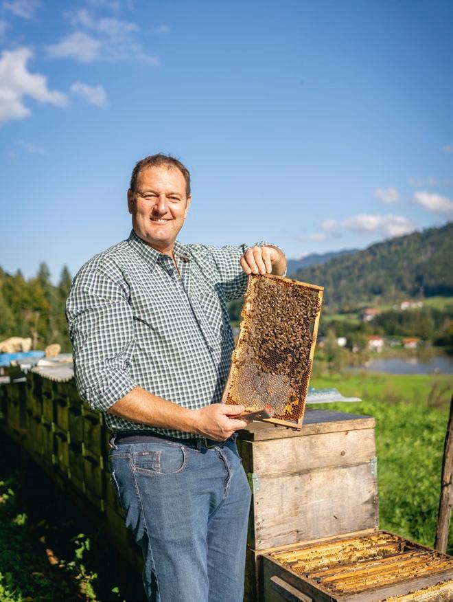 Bienen wieder im Stock sind, bis morgens um halb sieben hat das ganze Imkereiteam alle Hände voll zu tun. Wenn der nächste Trachtplatz im ausländischen Bodenseeraum ist, muss zusätzlich ein amtstierärztliches Gesundheitszeugnis für die Bienen beantragt werden. Schließlich ist auch die Organisation selbst eine Herausforderung, denn nicht überall werden zusätzliche Beuten geduldet. „Mit einem Wanderstand muss man nämlich mindestens 100 Meter Abstand zu einem Fixbienenstand haben“, erklärt uns Ferdl. Außerdem sollte der Platz für die Bienen passen und die Leute nicht stören. Inzwischen hat Ferdl längst gute Standplätze gefunden. Trotzdem plädiert er für mehr Toleranz unter den Imker*innen. „Man darf nicht das Gefühl haben, dass man sich etwas wegnimmt. Denn wenn die Tracht gut läuft, gibt es genug für alle. Und läuft es nicht, dann sollte man zusammenhalten.“ In diesem Austausch sind für Ferdl auch schon schöne Freundschaften entstanden – mit Lehrmeister*innen genauso wie mit Neulingen, die bei ihm lernen dürfen.