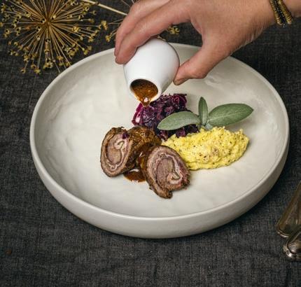 Zarte Karreerose gefüllt mit Schweinefilet, Lauch und Kalbsbrät