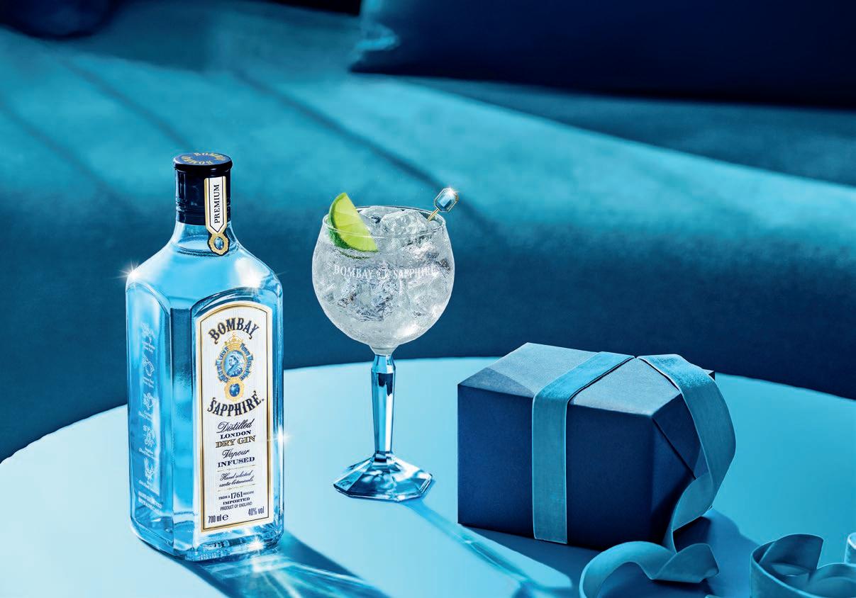 50 ml BOMBAY SAPPHIRE Gin, 100 ml Tonic Water, Limettenachtel
