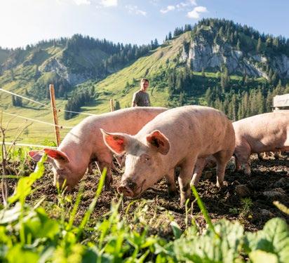 Die Alpschweine genießen als ideale Futtergrundlage hochwertige Molke. Auf den ausgewählten Sennalpen bekommen sie täglich Auslauf ins Freie. Durch diese artgerechte Haltung entsteht echte Premium-Qualität. Diesem Anspruch bleibt die Metzgerei Walser auch bei der Weiterverarbeitung treu – und das schmeckt man. Versprochen!
