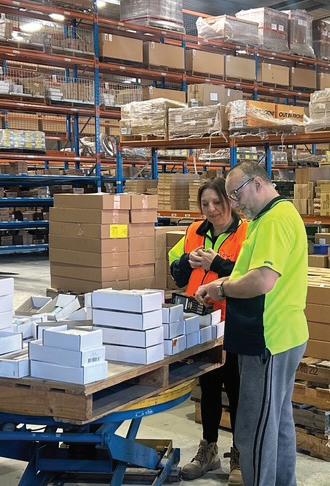 Precision in action – Maryanne and John checking and organising stock to keep the warehouse running smoothly!