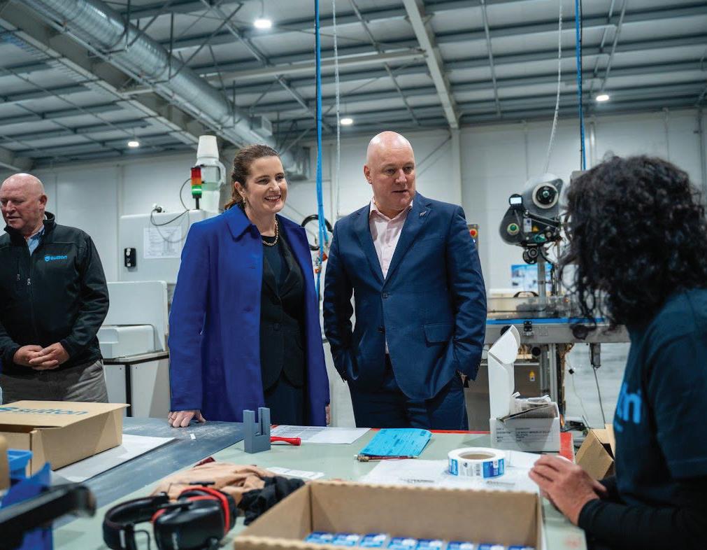 Prime Minister Christopher Luxon and Finance Minister Nicola Willis touring the factory