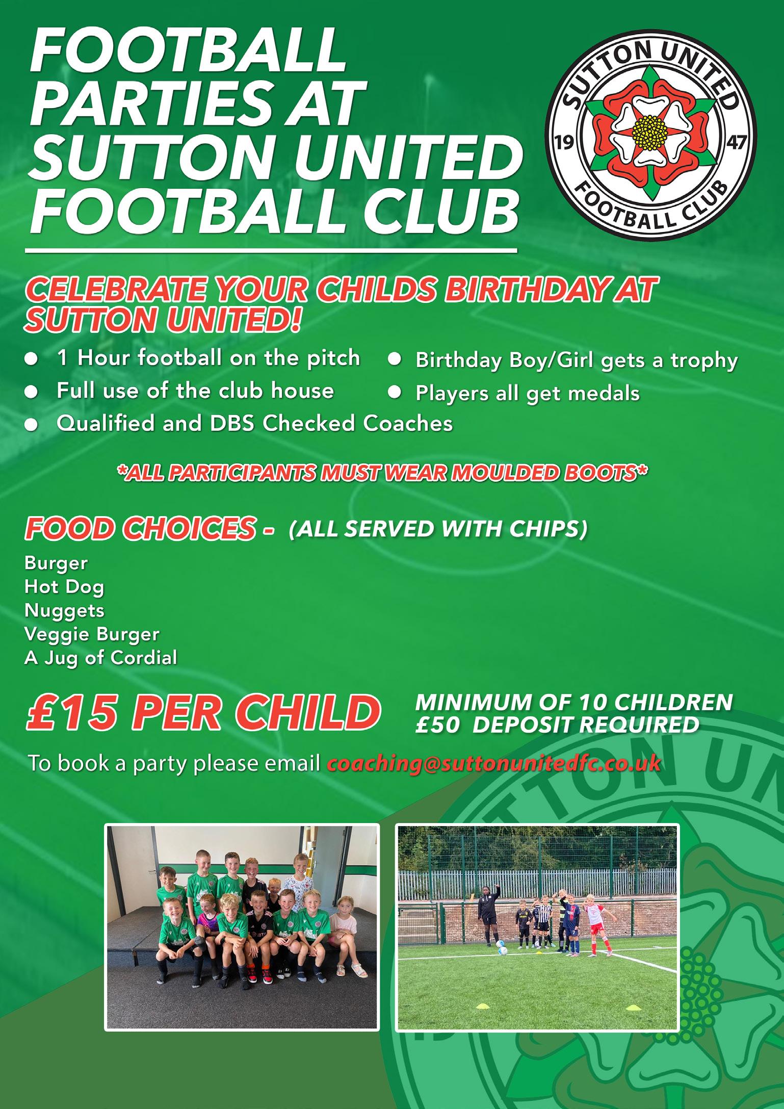Tuffield Head of Academy and Soccer School Lead academy@ suttonunitedfc.co.uk