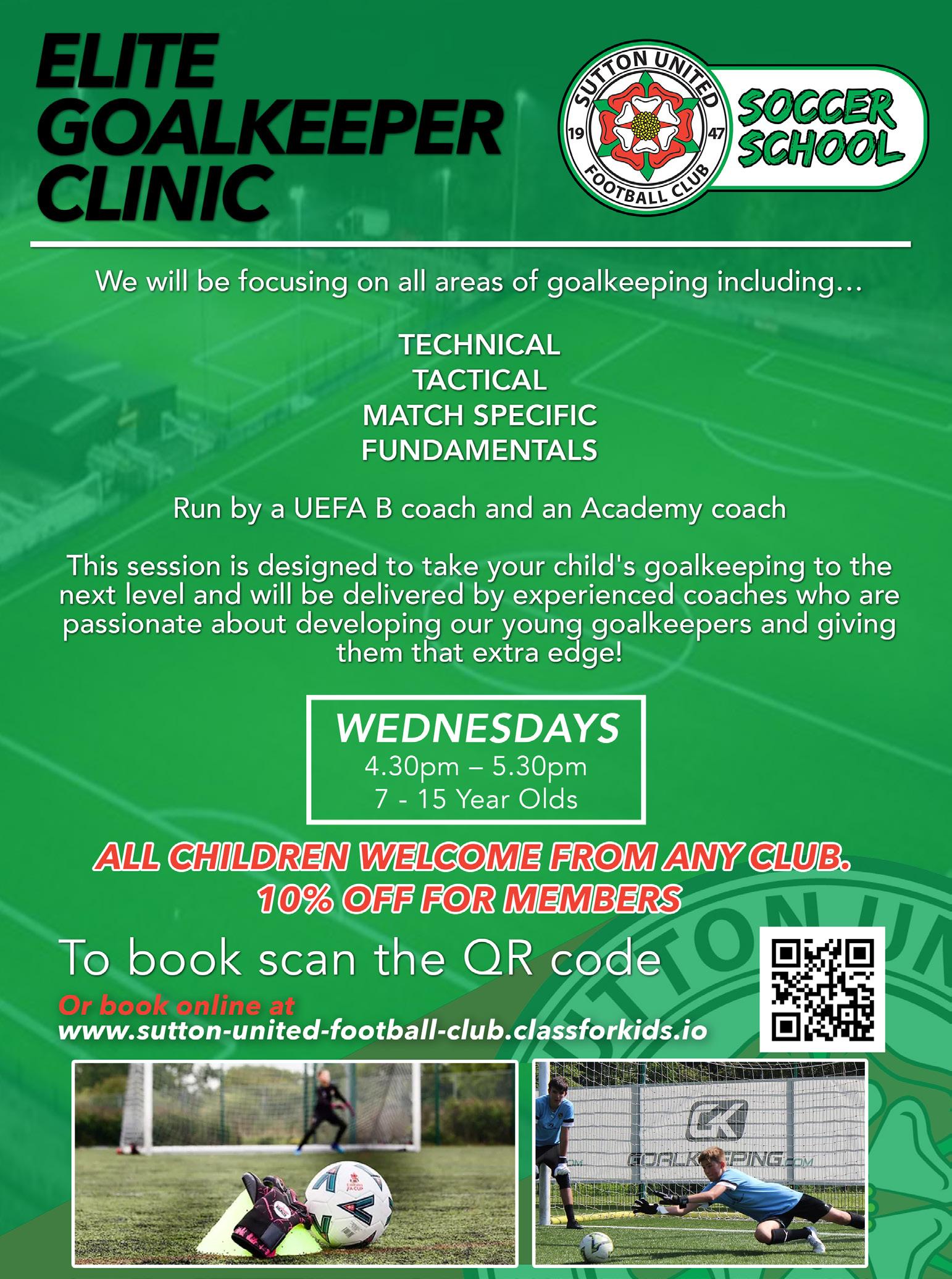 On a Wednesday we hold an elite goalkeeper clinic which is a great opportunity for aspiring 7-15 year olds to accelerate their progress as a goalkeeper in a fun and engaging session.