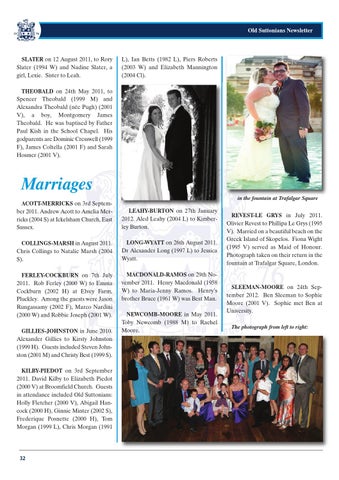 Marriages in the fountain at Trafalgar Square ACOTT-MERRICKS on 3rd September 2011. Andrew Acott to Amelia Merricks (2004 S) at Ickelsham Church, East Sussex.