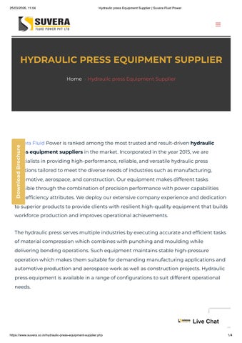 Hydraulic press Equipment Supplier _ Suvera Fluid Power