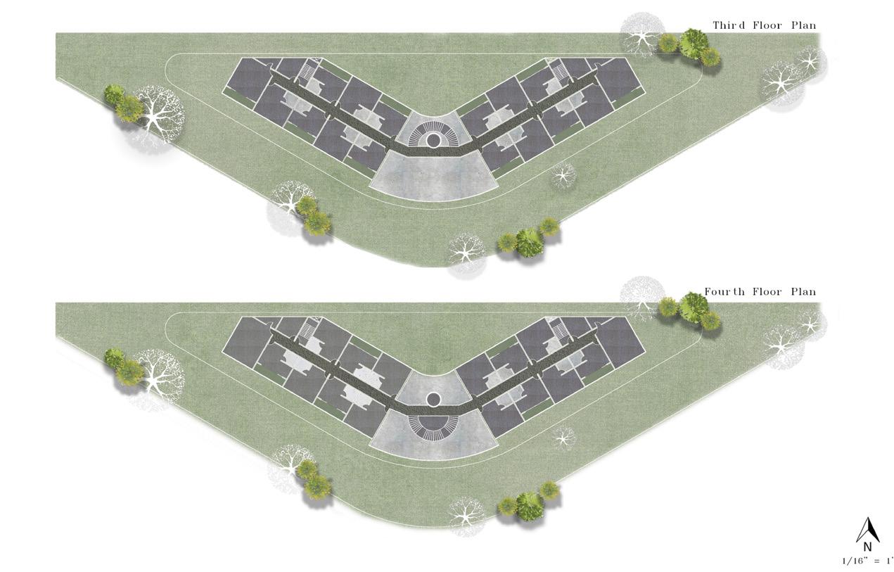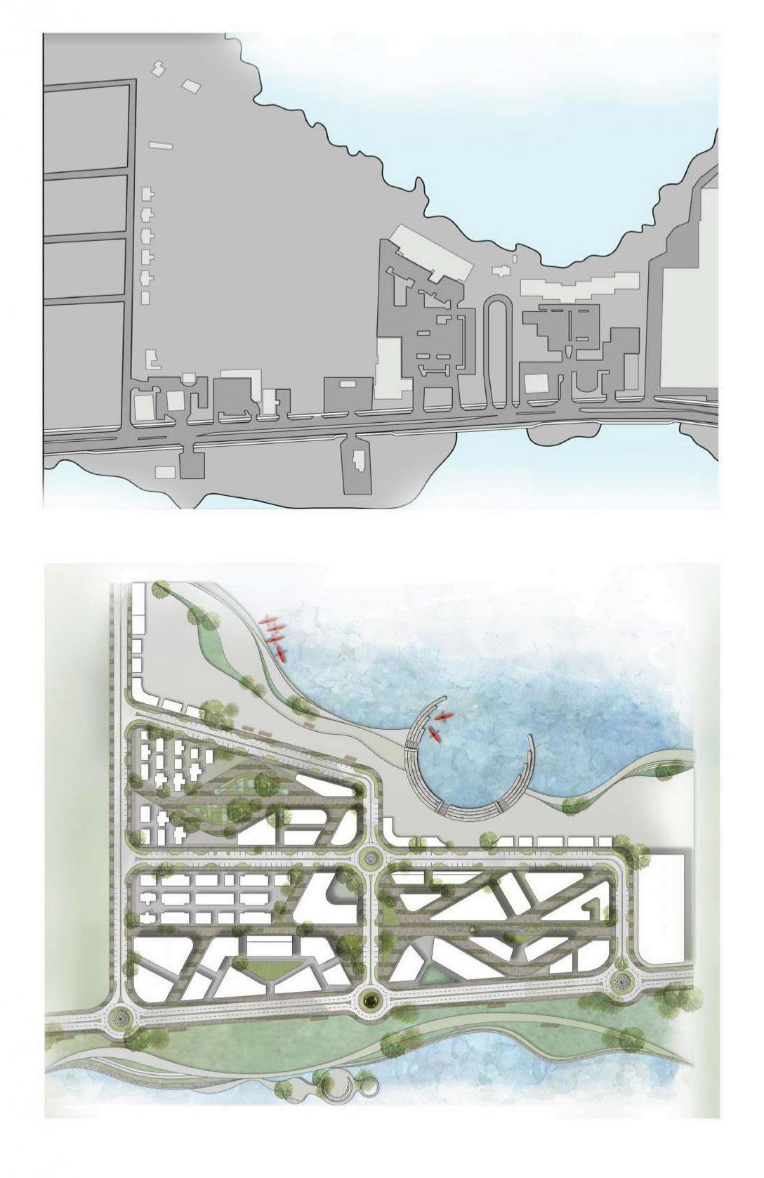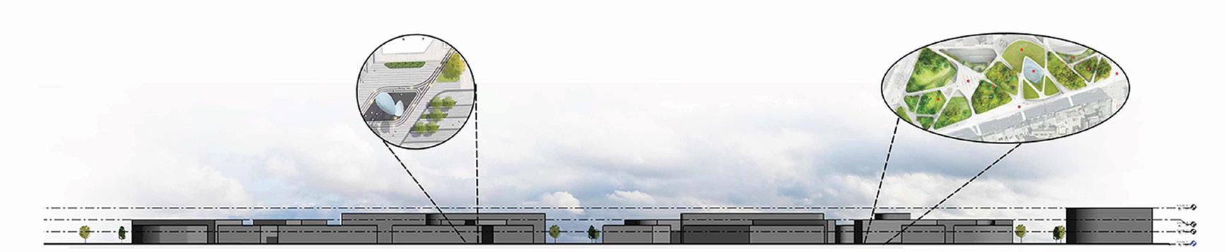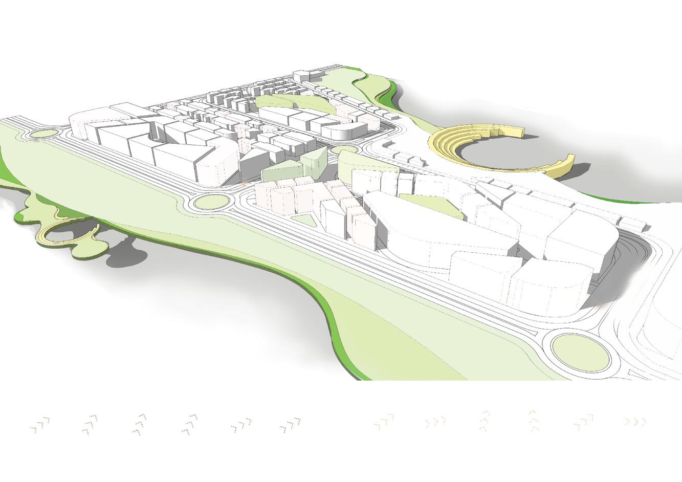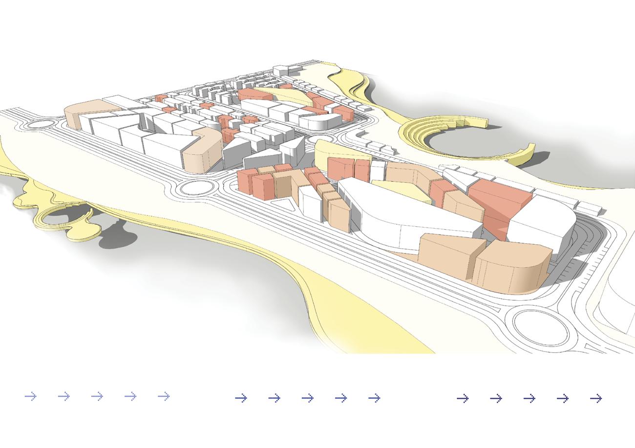 Combining clusters of different building type and placing them to make the masses protrude out to create a mesh planning