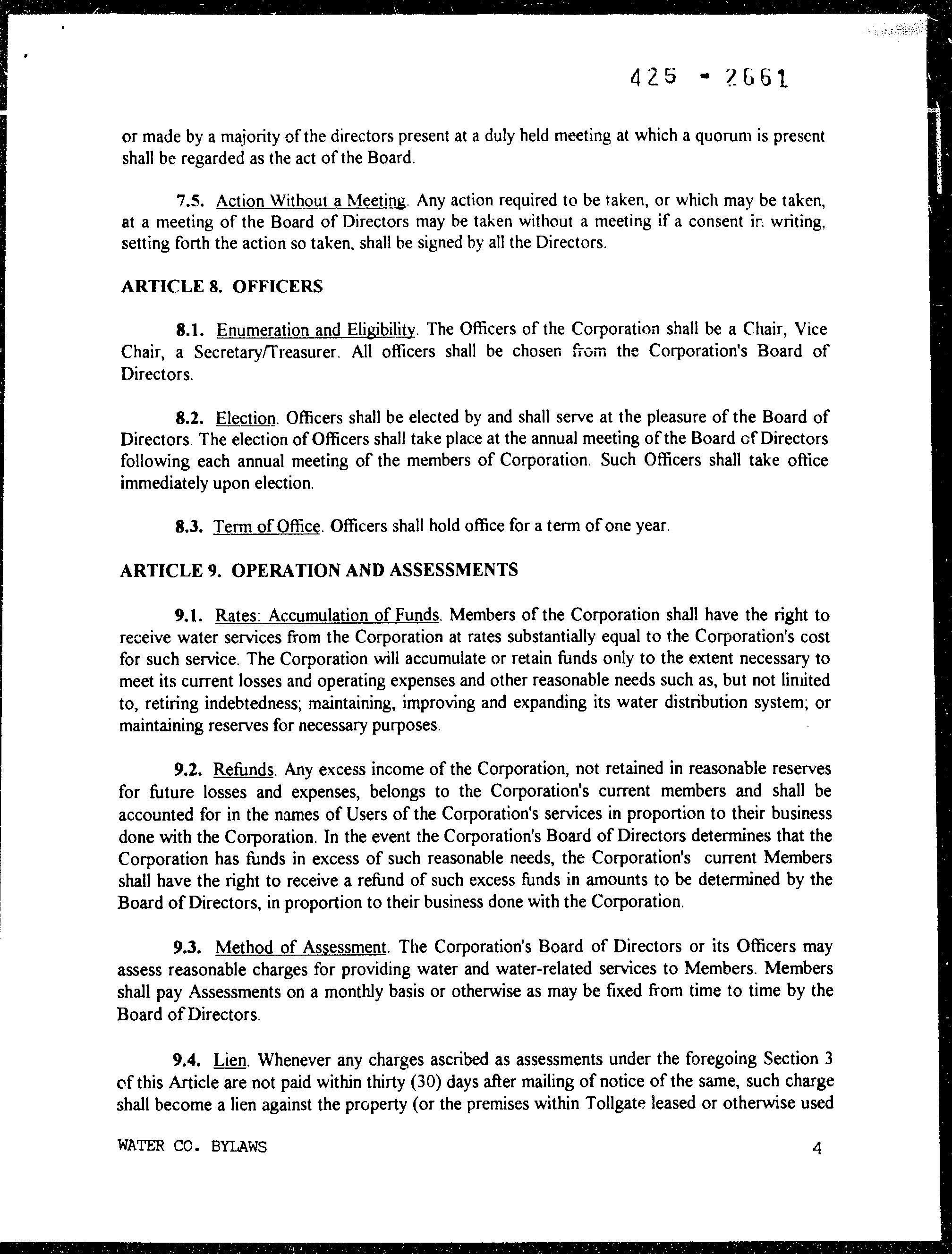WATER SERVICE PROVIDER TOLLGATE WATER COMPANY , GARBAGE & RECYCLING SERVICE HIGH COUNTRY DISPOSAL (541) 548-4984 1090 NE HEMLOCK AVE, REDMOND, OR 97756