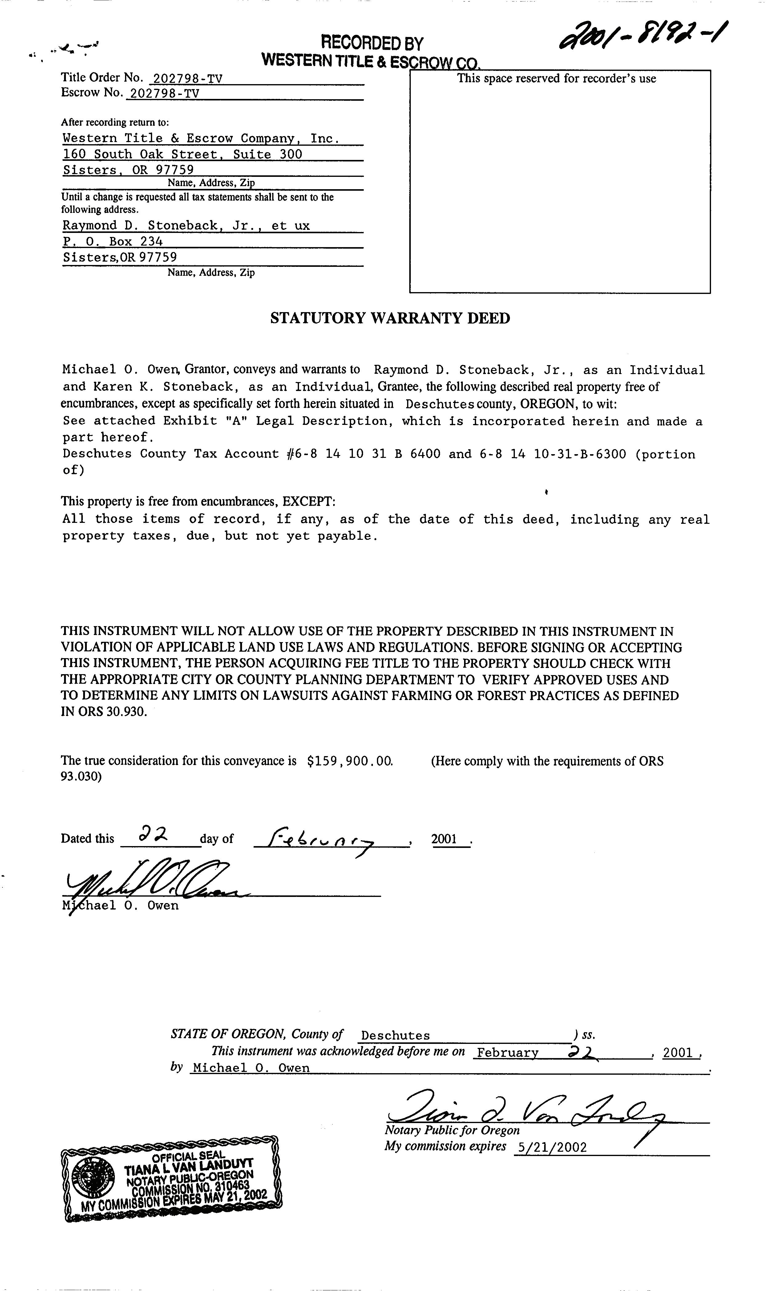 City: SISTERS Serial: 144671