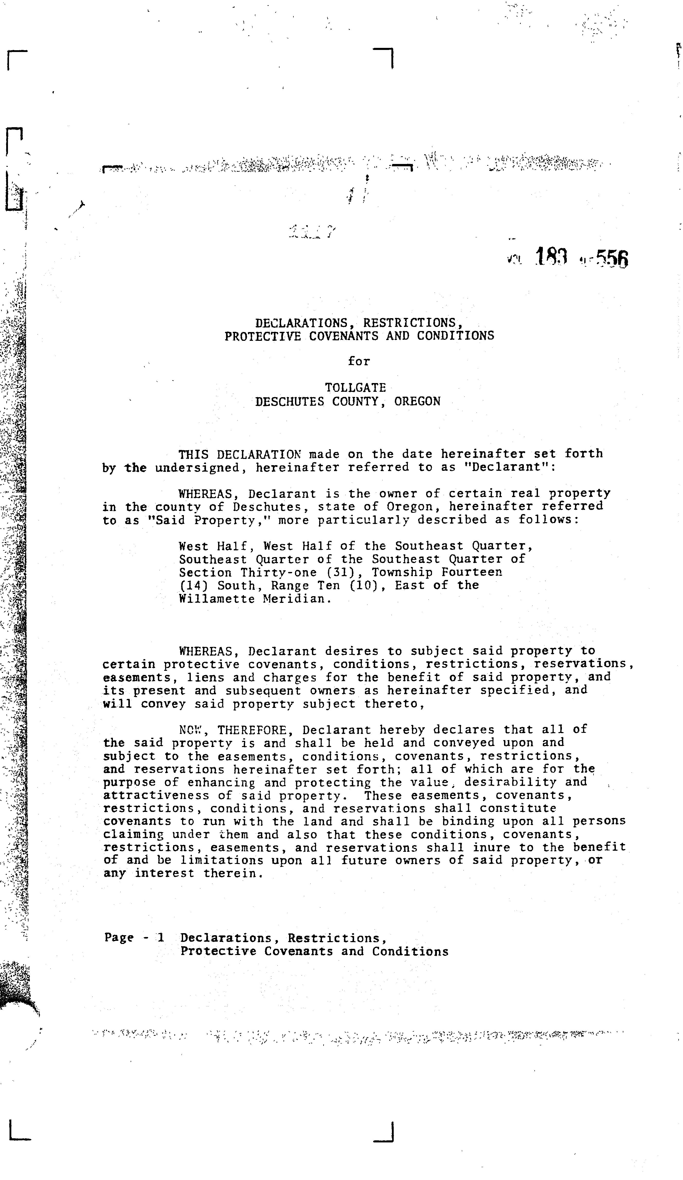 Omitted from the attached document is any covenant or restriction that is based upon, but not necessarily limited to, race, color, religion, sex, sexual orientation, familial status, marital status, disability, handicap, national origin, ancestry, source of income, gender, gender identity, gender expression, medical condition or genetic information, as set forth in applicable state or federal law, except to the extent that such covenant or restriction is permitted by applicable law. Oregon Version 20150707