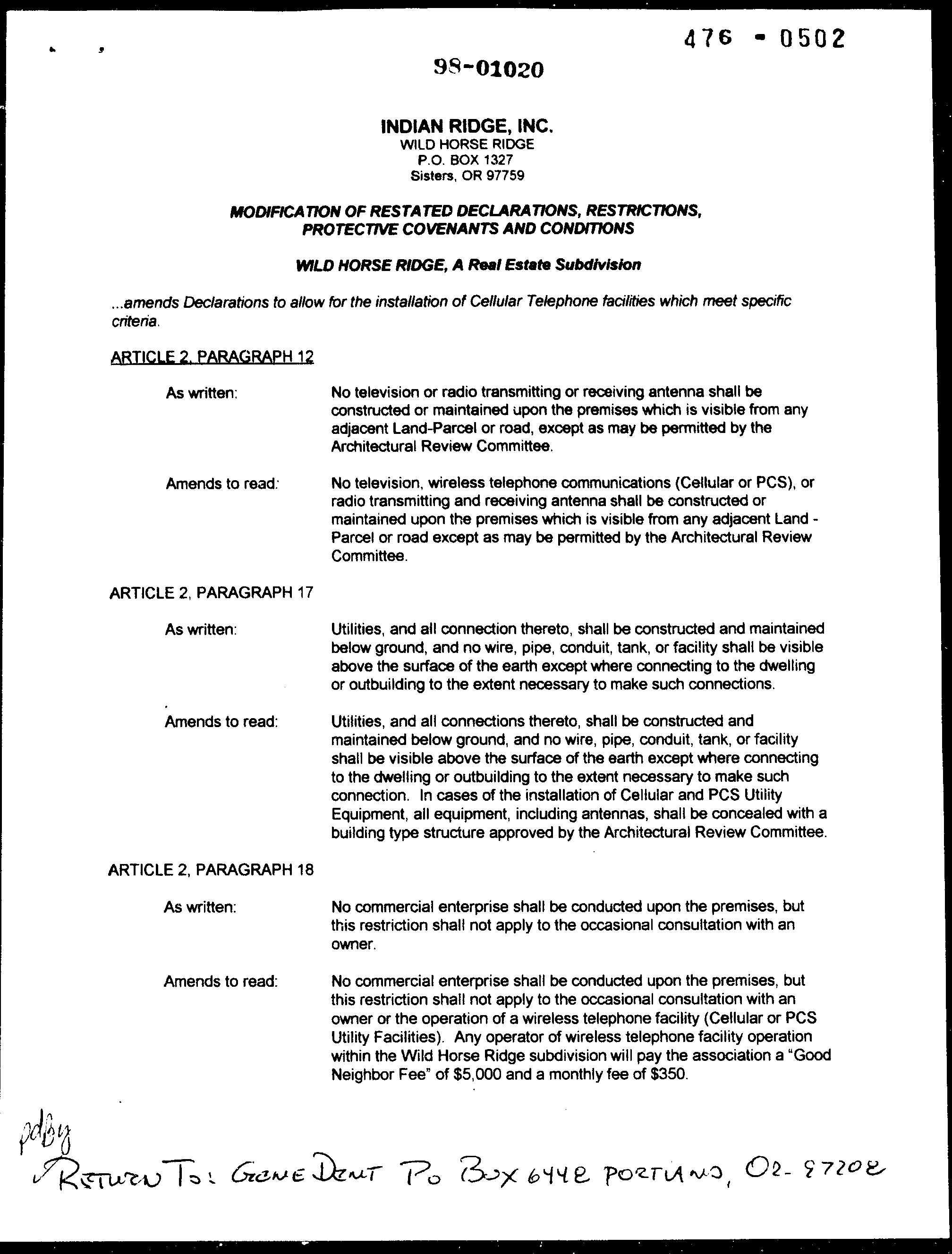 Omitted from the attached document is any covenant or restriction that is based upon, but not necessarily limited to, race, color, religion, sex, sexual orientation, familial status, marital status, disability, handicap, national origin, ancestry, source of income, gender, gender identity, gender expression, medical condition or genetic information, as set forth in applicable state or federal law, except to the extent that such covenant or restriction is permitted by applicable law. Oregon Version 20150707