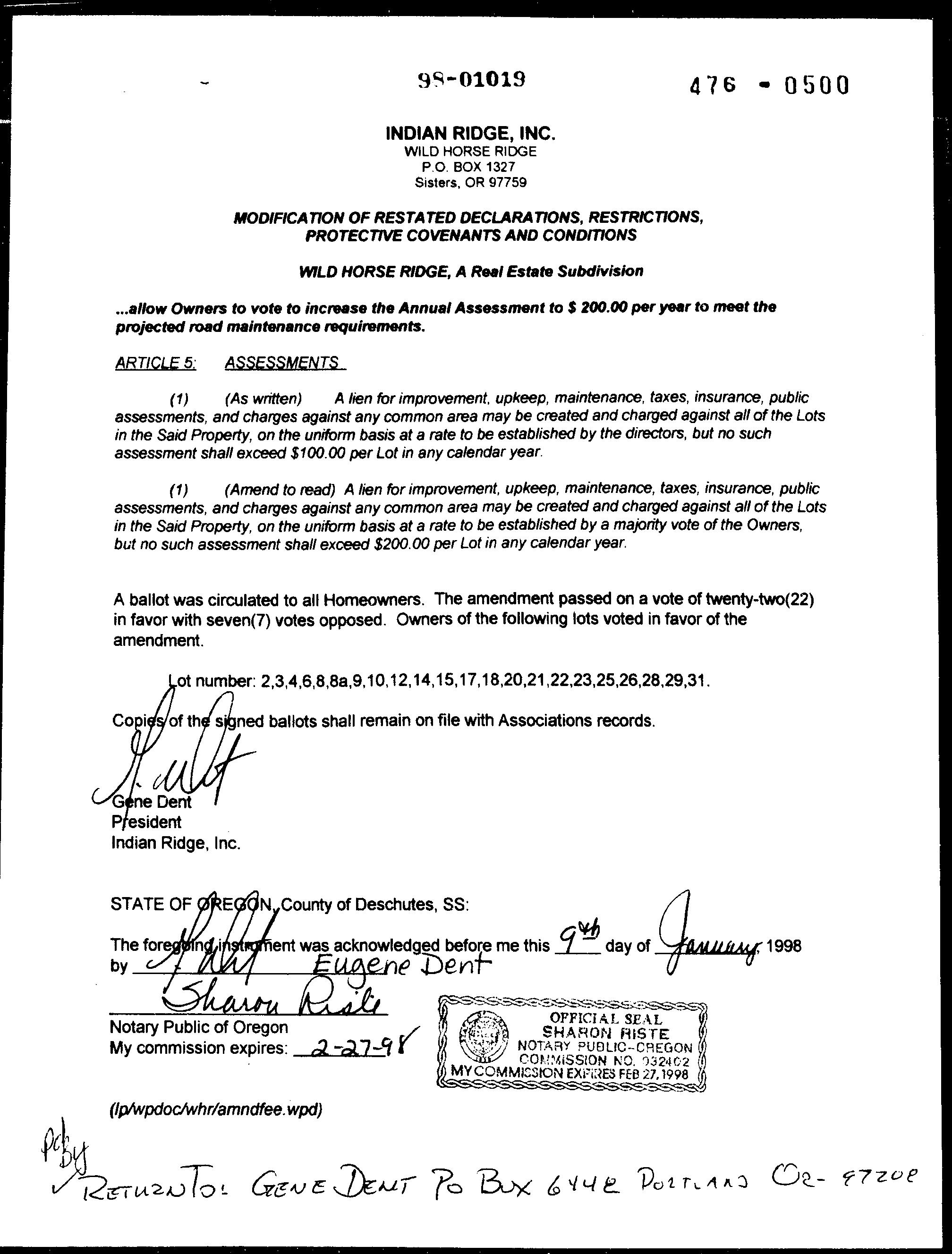 * By Mail to Deschutes County Tax, PO Box 7559 Bend OR 97708-7559