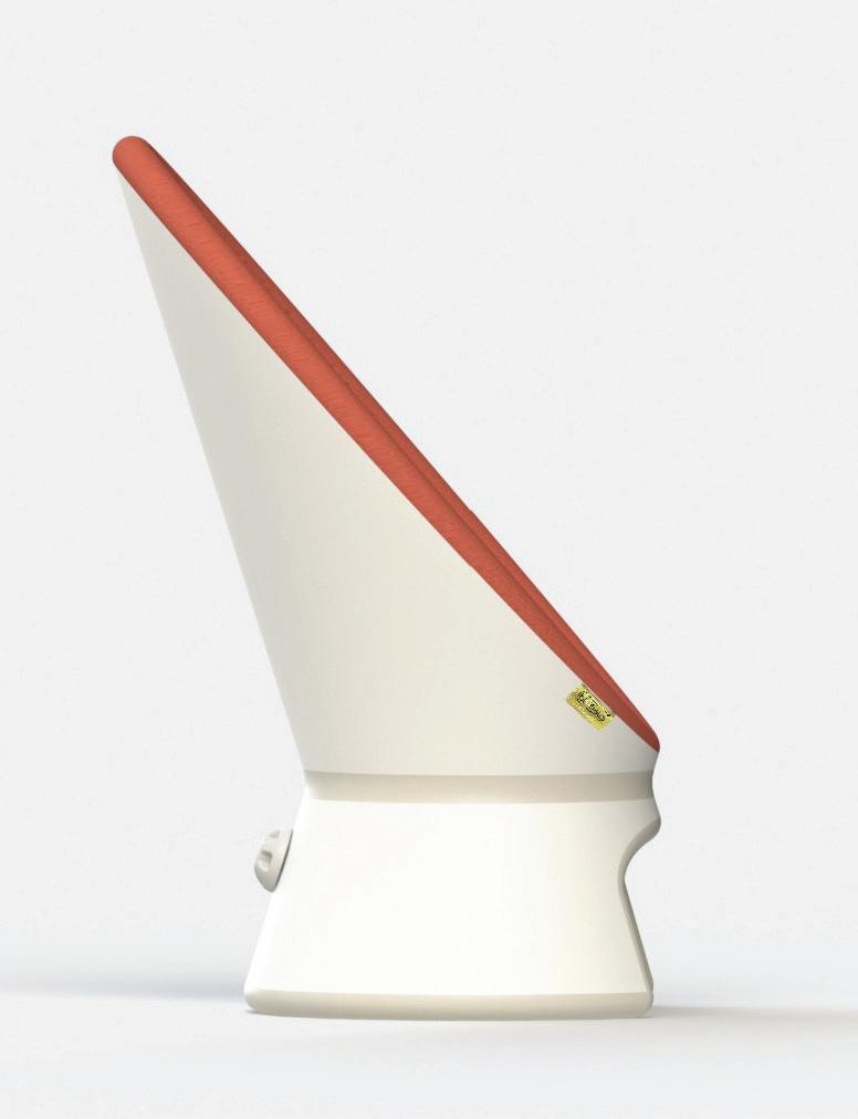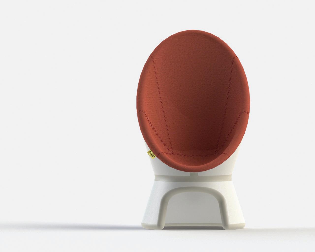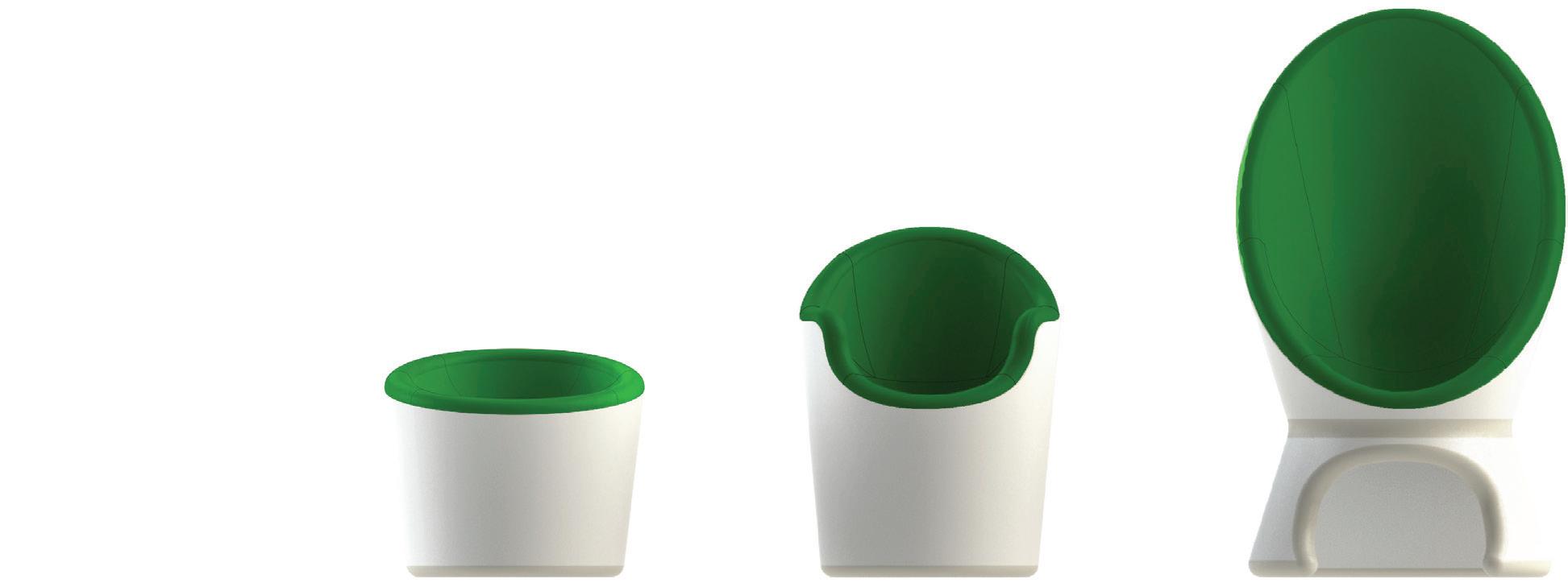 Renderings of the High Chair: Front, back, and side views, with the air valve prominently visible at the back.
