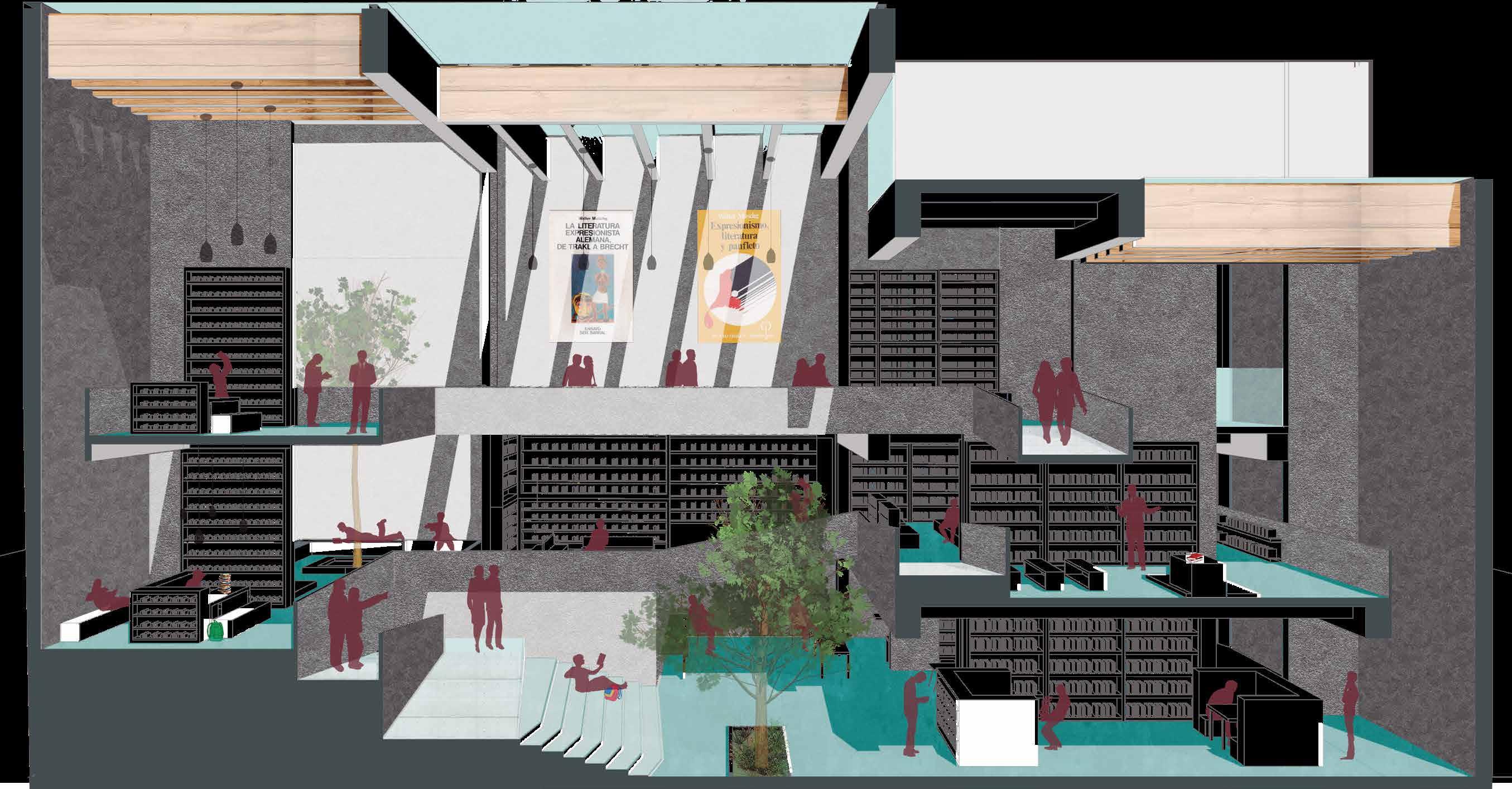 El proyecto Biblioteca busca brindar un espacio para “el aprendizaje” a travéz de los libros , generando un programa arquitectónico que consiste en medioteca, diversas áreas de lectura , espacios conferencias, área infantil y literatura.