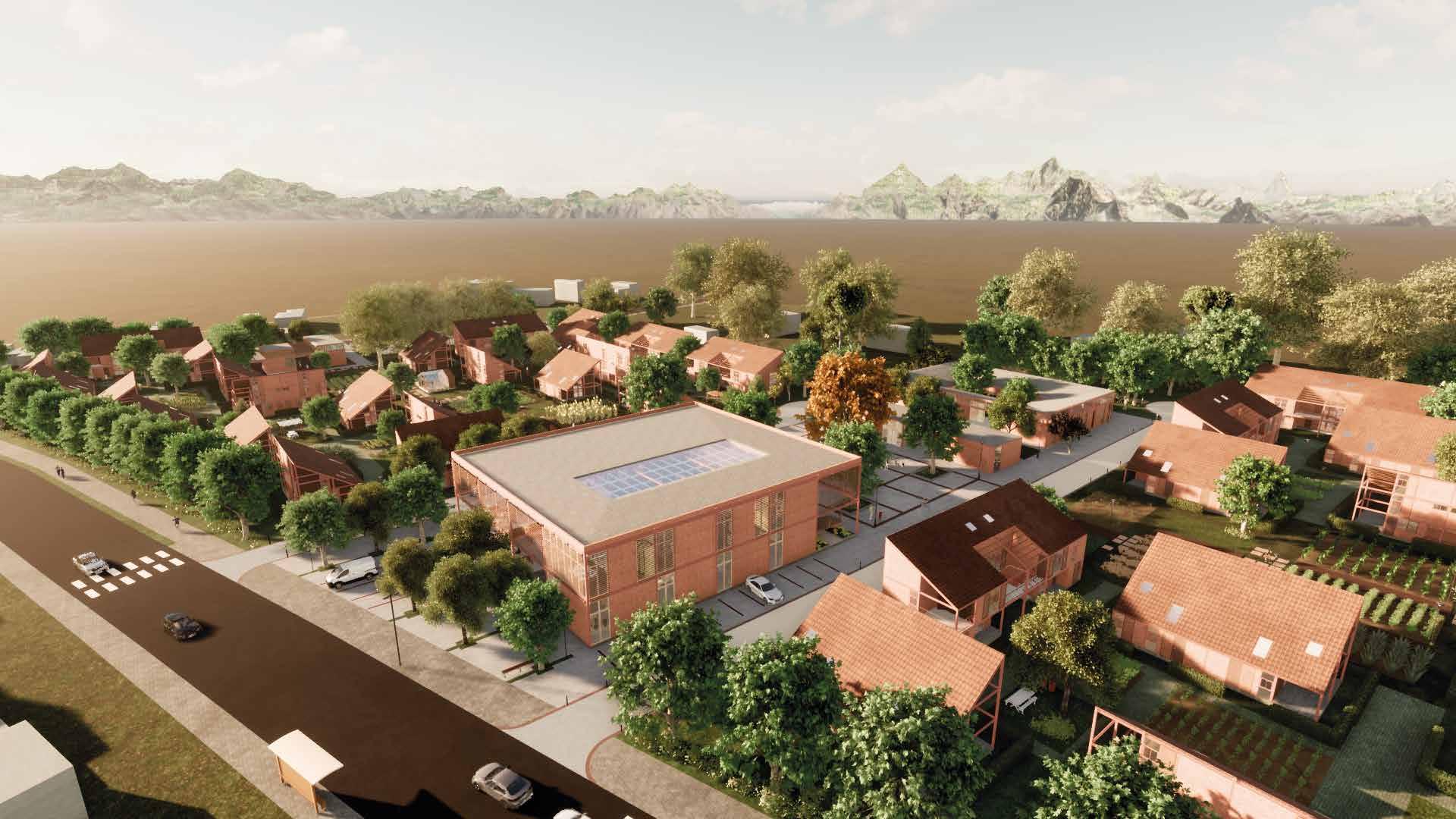 Se remplazan los muros por filtros vegetales. El proyecto priorizando al peatón y a las áreas verdes productivas, parqueaderos se concentran al extremo.