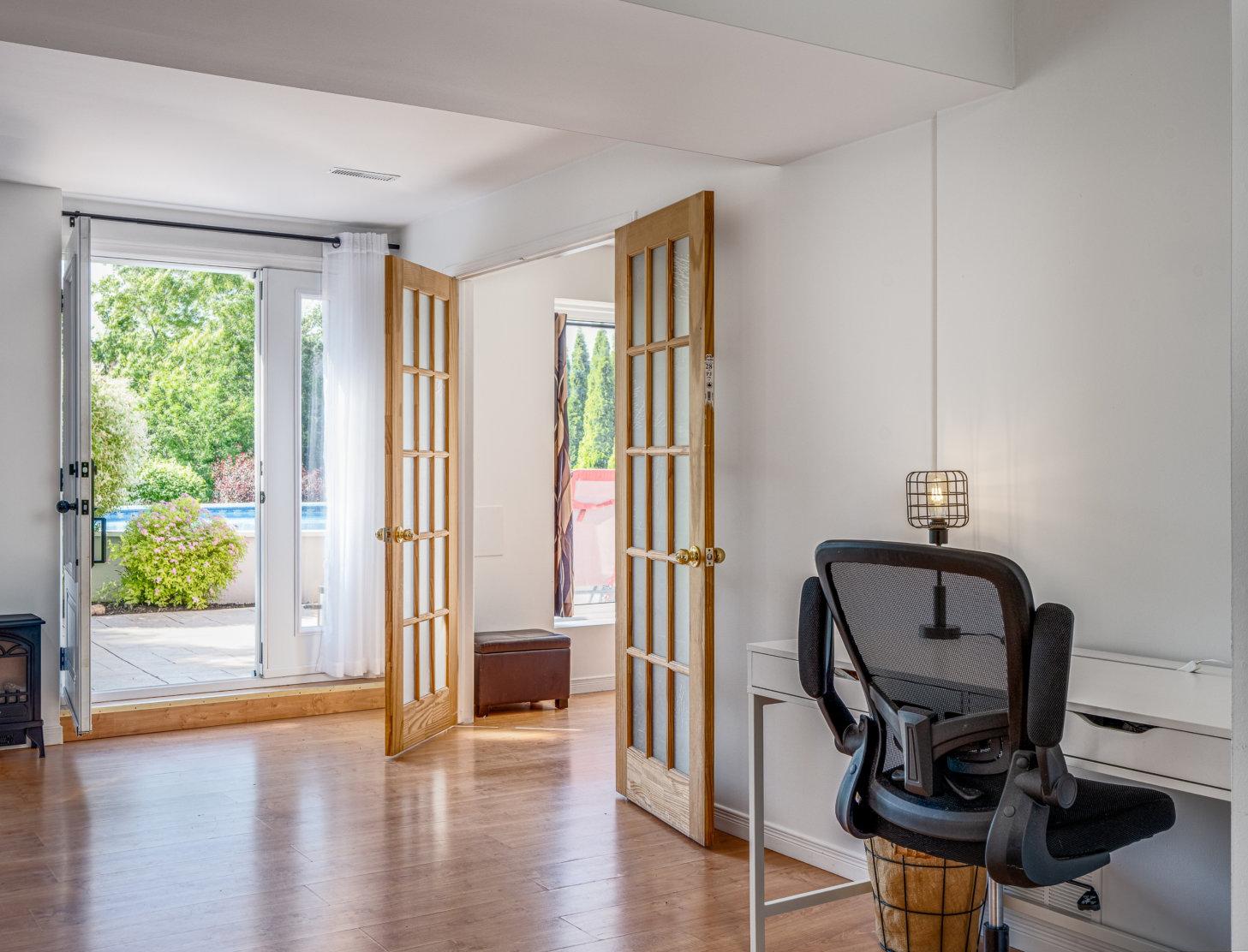 The main floor office is ideal for the work-from-home professional, featuring rich hardwood floors and large windows that invite an abundance of southern sunlight throughout the day. This versatile space can also be easily transformed into a formal dining room, depending on your needs.