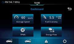 afișează informații legate de consumul de combustibil, autonomie fluxul energiei prin sistemul hibrid, diferite alerte, precum și imagine preluate de camera pentru marșarier și cea cu vedere la 360 de grade. Echipările Cool și