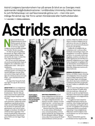 Astrid Lindgrens barndomshem har på senare år blivit en av Sveriges mest spännande trädgårdsdestinationer. I småländska Vimmerby tolkas hennes liv och författarskap i en rad fascinerande gröna rum – men inte som många förväntat sig. Här finns varken Körsbärsdal eller Katthultsbersåer. TEXT LISA ISING FOTO PERNILLA BERGDAHL.