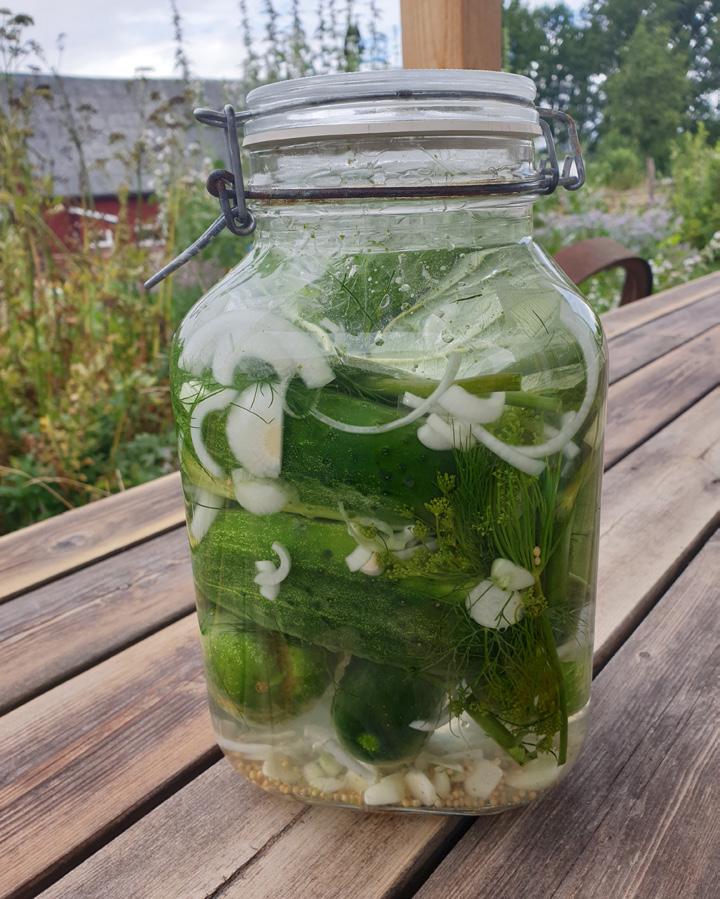 Man vill skapa en syrefri miljö, detta får man genom att packa grönsakerna ordentligt i burken och se till att de täcks av vätska. Lägg gärna något i burken som pressar ner grönsakerna under ytan, till exempel en plastpåse med lite vatten i.