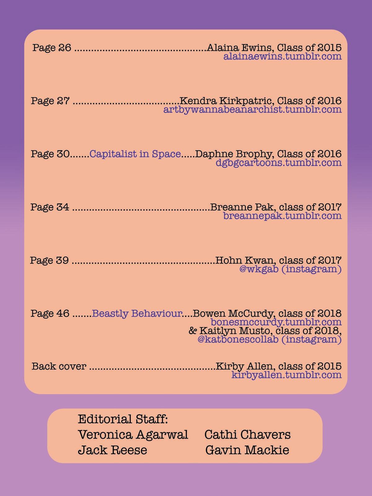 INK magazine assembles the best comics by students at the School of Visual Arts in New York City. Read more at inksva.com . All stories © 2015 by their respective authors. All rights reserved. No work from this magazine may be excerpted or reprinted without permission from the author.